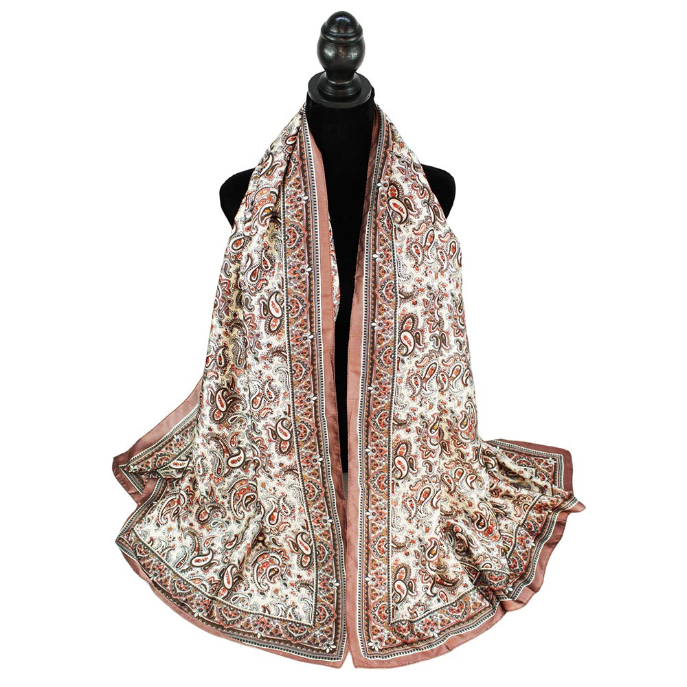 Details • Size : 35" X 78" • Material : 70% Viscose, 30% Silk • Breathable, Lightweight, Skin-friendly and Soft • Enhance your style with this elegant scarf featuring an intricate paisley design. Its timeless look adds a refined touch to casual or formal outfits. Lightweight and versatile, it's perfect as a neck wrap, shawl, or hair accessory for everyday wear or travel.