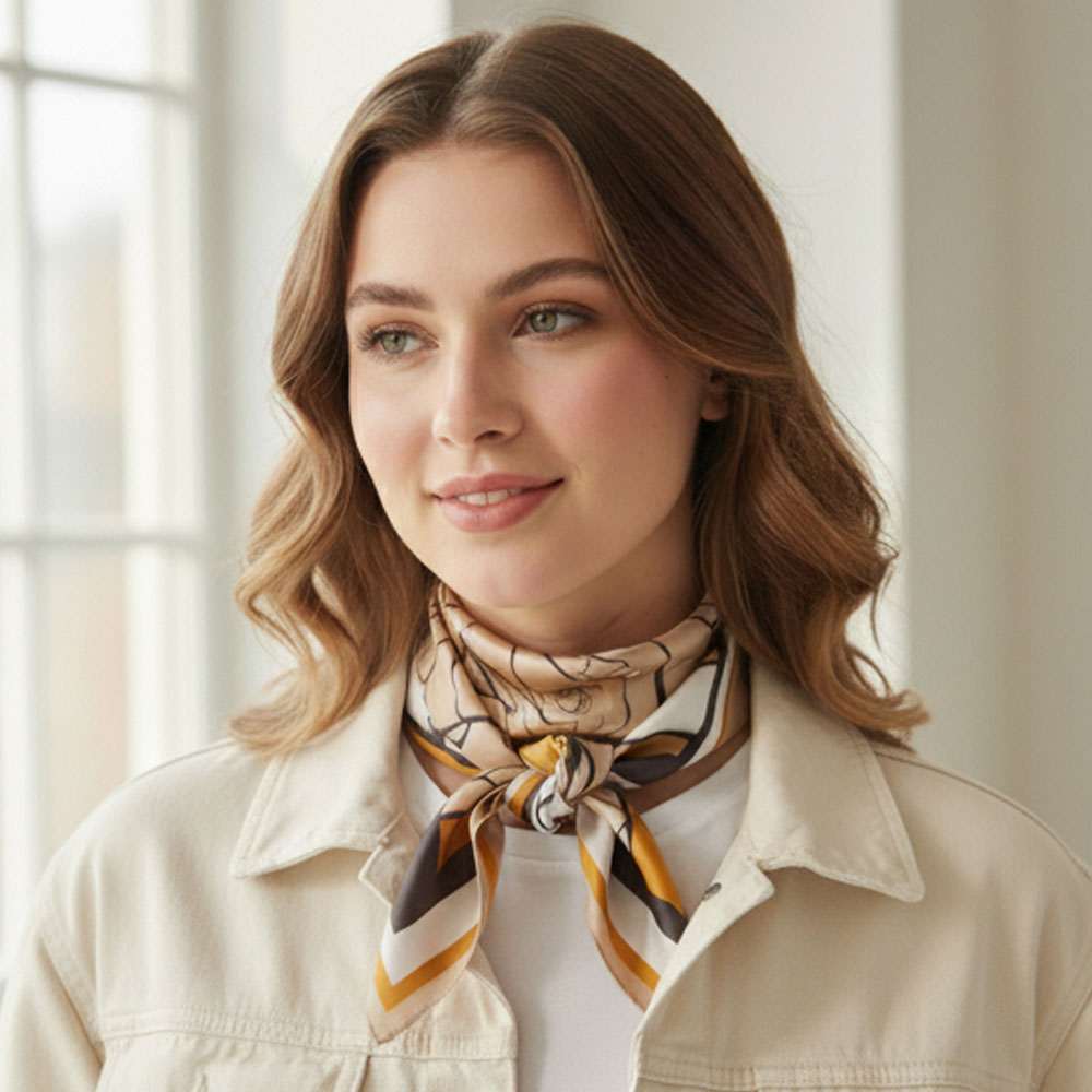 Details • Size : 27.5" X 27.5" • Material : 100% Polyester • Elevate your style with this chic square scarf featuring a bold abstract rose print in beautifully coordinated neutral tones. Its smooth, lightweight drape makes it perfect for tying at the neck, hair, handbag, or wrist. A modern statement accessory that effortlessly transitions from casual looks to elegant outfits, adding sophistication to every ensemble.