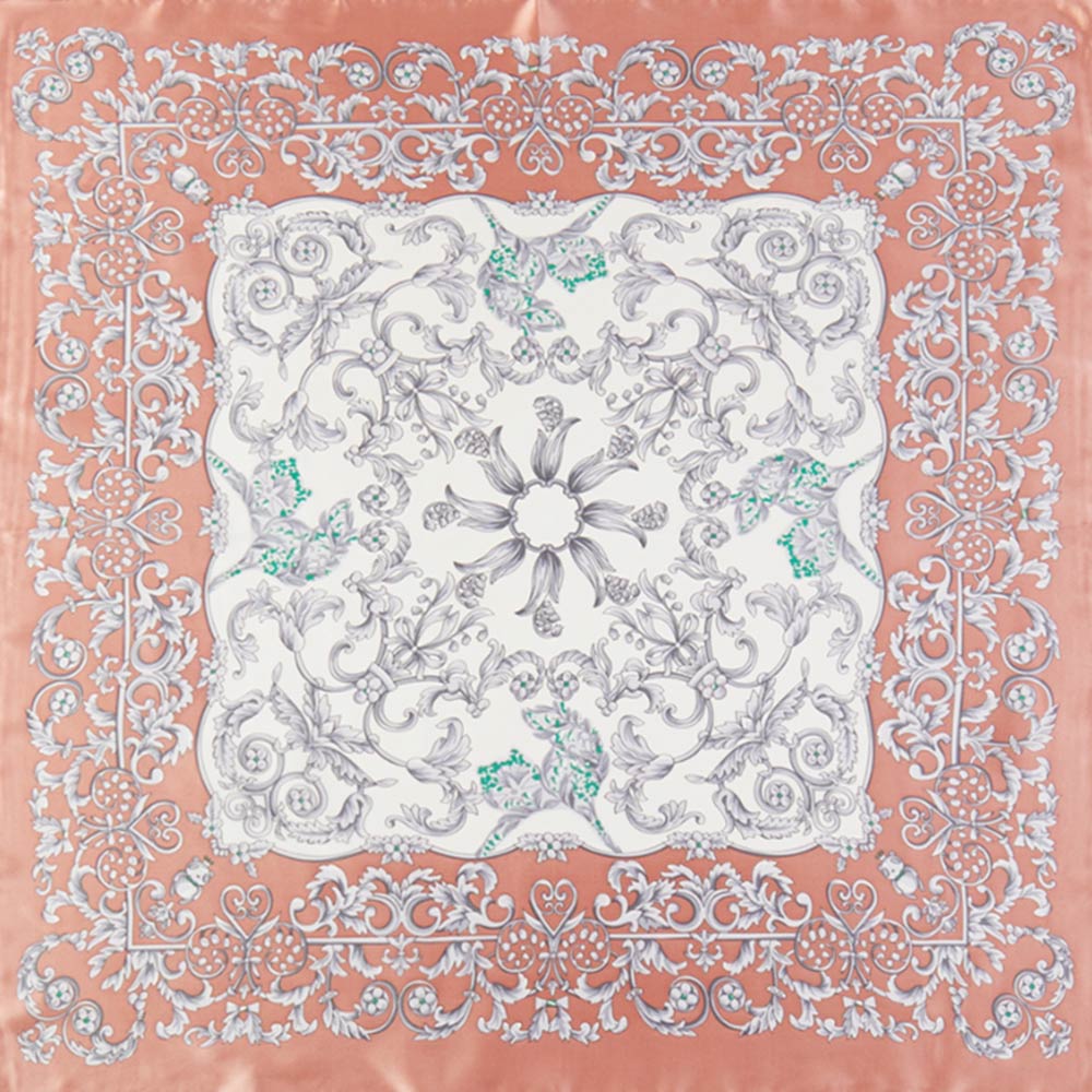 • Wrap yourself in vintage elegance with this beautiful square scarf. It features an intricate Baroque-inspired scrolling floral and vine pattern in pastel tones on a satin-like background. The luxurious feel and delicate design make it a versatile accessory for adding a touch of romance and sophistication. Perfect for a neckerchief, headband, or handbag accent.