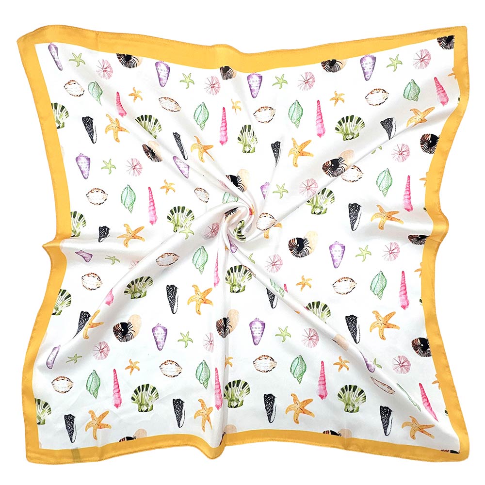 Beach Day Sea Life Printed Square Silky Satin Bandana Scarf Beach Day Sea Life Printed Square Silky Satin Bandana Scarf