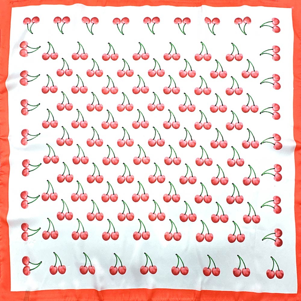 Cherry Pattern Printed Square Silky Satin Bandana Scarf Cherry Pattern Printed Square Silky Satin Bandana Scarf