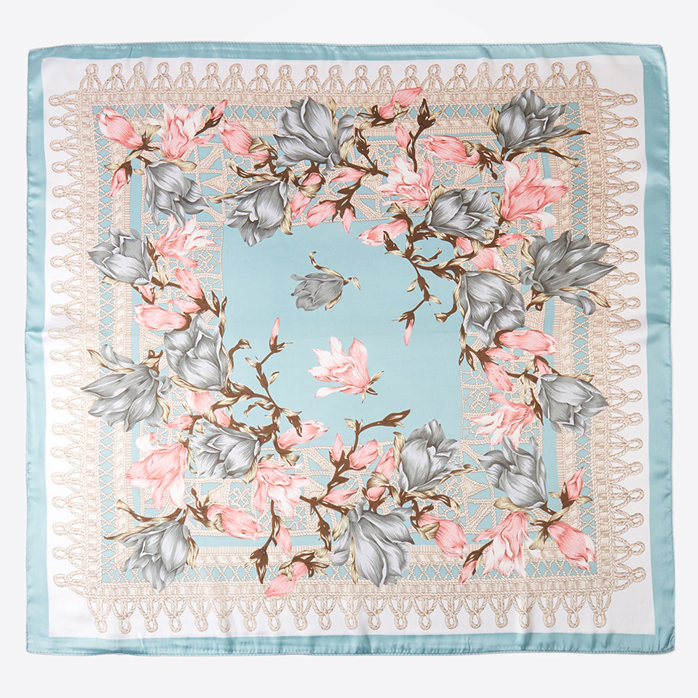 Classy Floral Printed Square Silky Satin Bandana Scarf