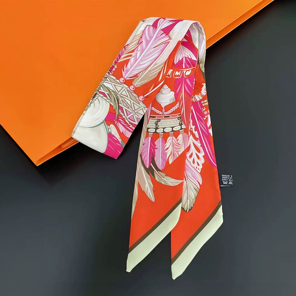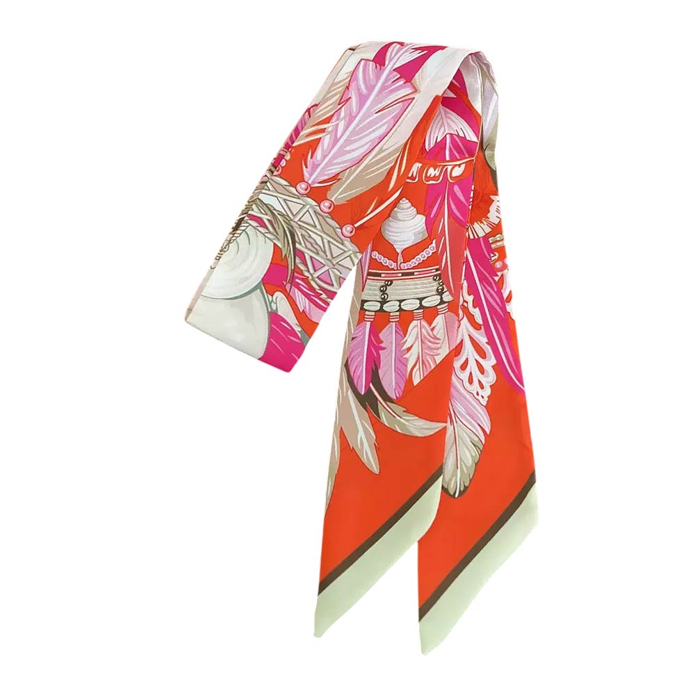 Details • Size : 2" X 35.4" • Material : 100% Polyester • Feather print skinny scarf designed for versatile styling on hair, handbags, wrists, or necks. The elongated silhouette adds a bold, artistic accent to everyday outfits, boutique displays, and giftable collections, offering an easy way to elevate casual or dressy looks.