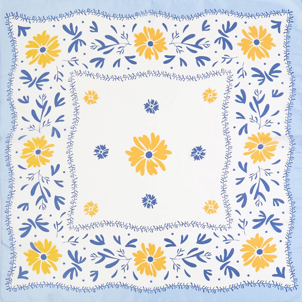 Floral Framed Border Printed Square Silky Satin Bandana Scarf