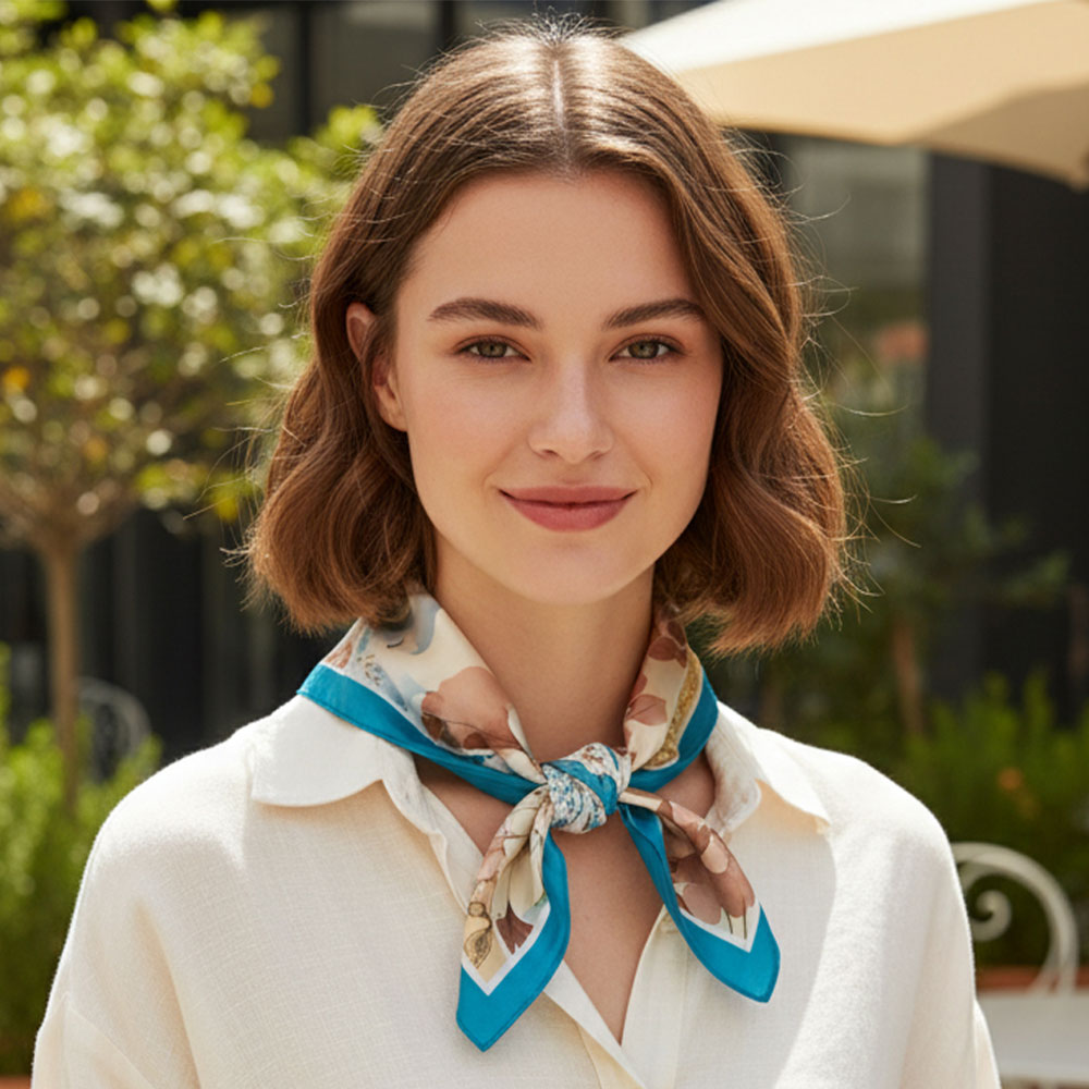 • Elevate everyday style with this floral patchwork square scarf featuring a blend of botanical patterns and delicate garden-inspired motifs. Soft and lightweight, it’s ideal for wearing around the neck, in hair, or tied to a bag. A versatile accessory that adds charm, pattern, and sophistication to casual outfits, workwear, and travel looks.