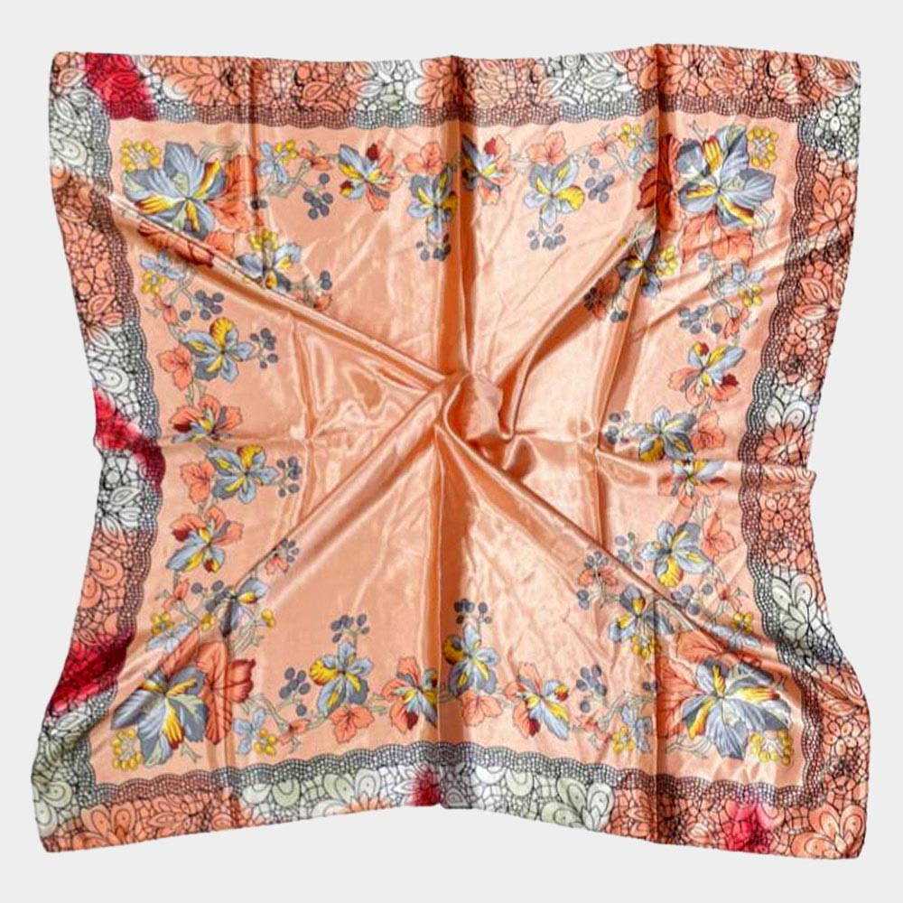 Details • Size : 35" X 35" • Material : 100% Polyester, Premium quality fabric is breathable, lightweight, skin-friendly and soft. • Add a touch of sophistication to your look with this floral square scarf featuring an ornate border. Perfect for styling around the neck, hair, or bag, this versatile accessory enhances both casual and formal outfits with timeless charm.