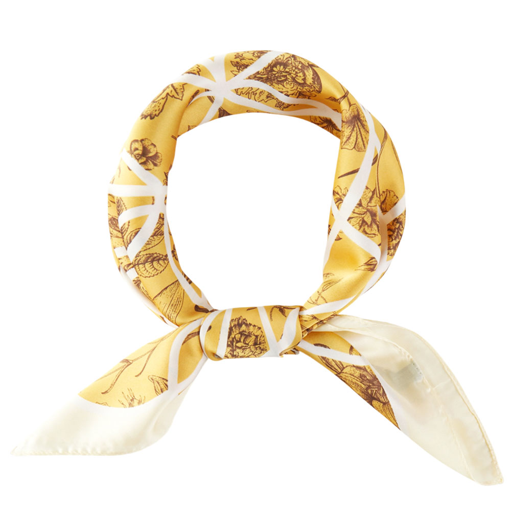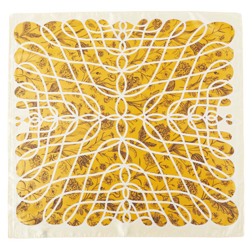 • This square scarf features an intricate overlay pattern with delicate botanical detailing, bringing a refined and artistic touch to any ensemble. Its lightweight feel makes it perfect for styling around the neck, hair, or handbag, adding a sophisticated accent to everyday and special looks.