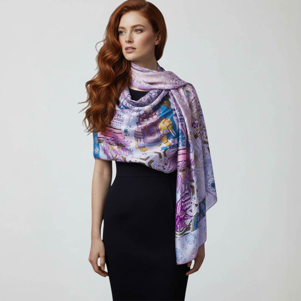 Ornate Elephant Motif Printed Oblong Silky Satin Scarf Shawl Ornate Elephant Motif Printed Oblong Silky Satin Scarf Shawl Ornate Elephant Motif Printed Oblong Silky Satin Scarf Shawl