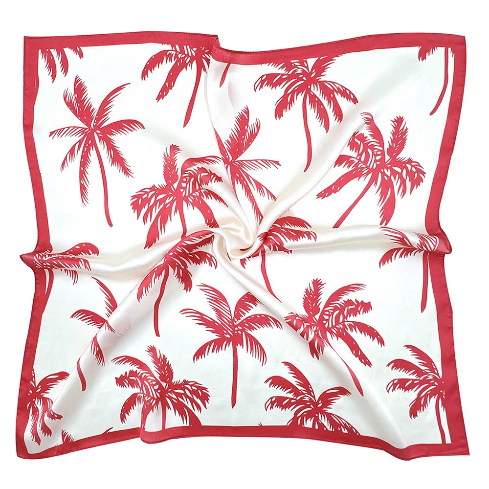 • Tropical palm tree square scarf designed in a versatile 27.6 x 27.6 inch size. Perfect for styling around the neck, hair, wrist, or bag, this scarf brings a relaxed resort-inspired feel to everyday outfits, vacations, and seasonal collections while offering effortless styling flexibility.