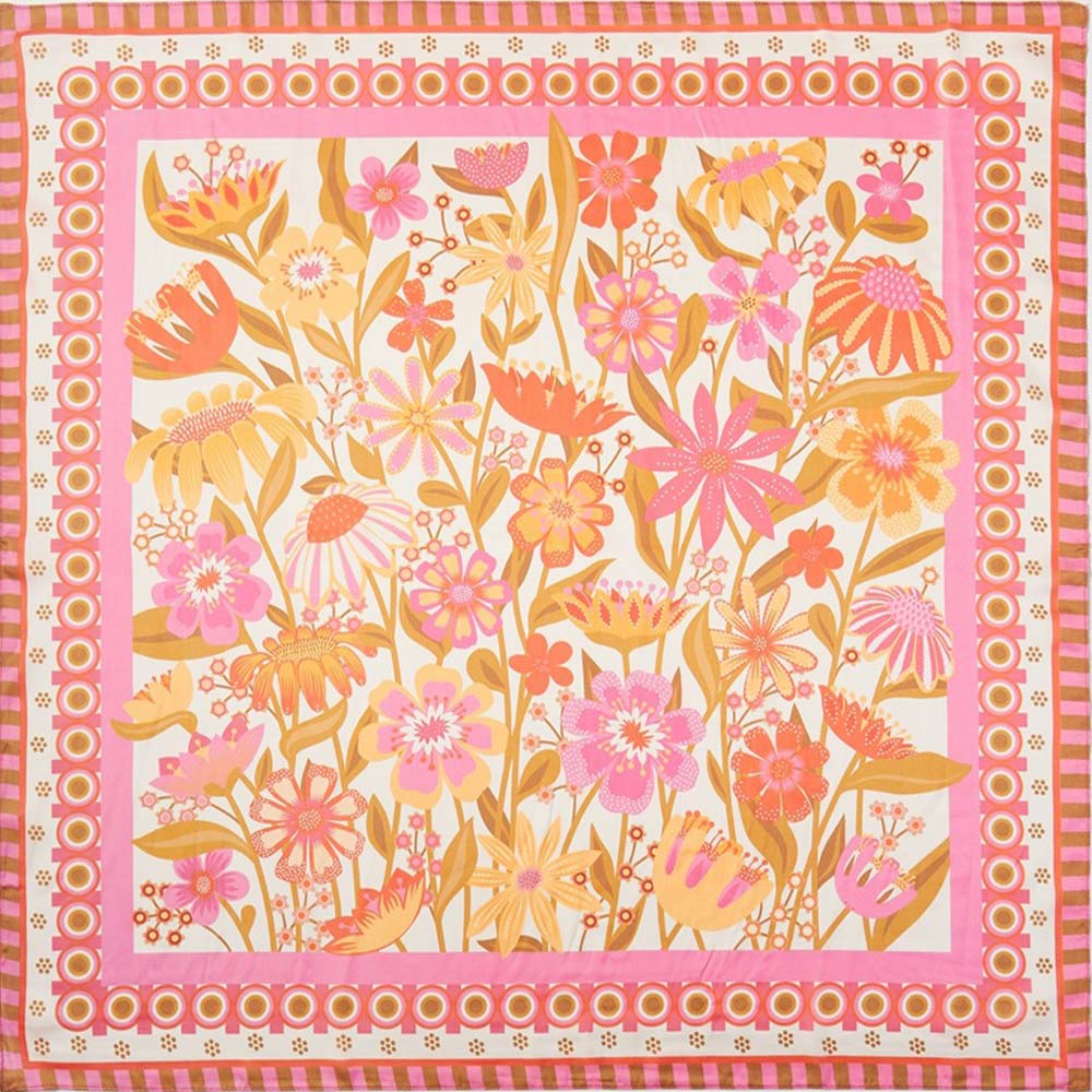 • Square fashion scarf featuring a detailed botanical meadow design with layered floral illustrations and decorative borders. Ideal for styling on the neck, hair, wrist, or handbag, this versatile accessory brings a fresh, artistic accent to everyday looks, seasonal outfits, and curated boutique collections.