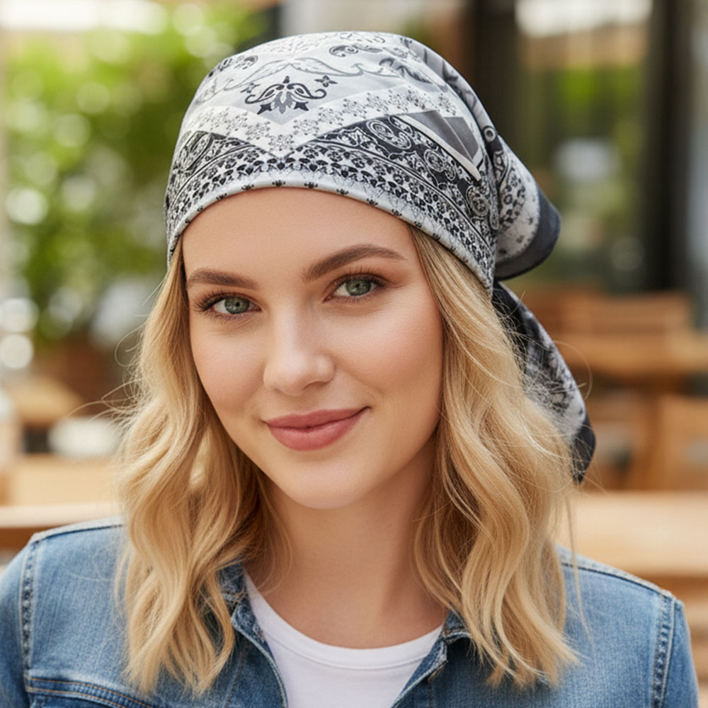 • Vintage-inspired square fashion scarf featuring an elegant baroque print with a smooth, lightweight drape for versatile styling. Wear it as a neck scarf, hair accessory, or handbag accent to elevate everyday outfits, office attire, and travel looks. A classic gift choice for anyone who loves timeless patterns.