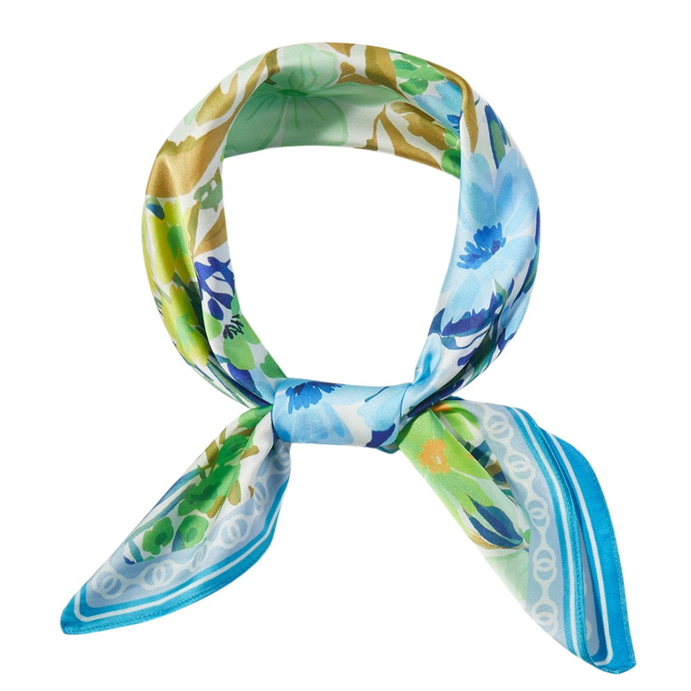 Details • Size : 27.5" X 27.5" • Material : 100% Polyester • Elegant square fashion scarf showcasing a vintage-inspired floral garden pattern with layered botanical details. Designed for versatile styling on the neck, hair, wrist, or handbag, this timeless accessory adds a soft romantic touch to everyday outfits, seasonal collections, and curated boutique assortments.