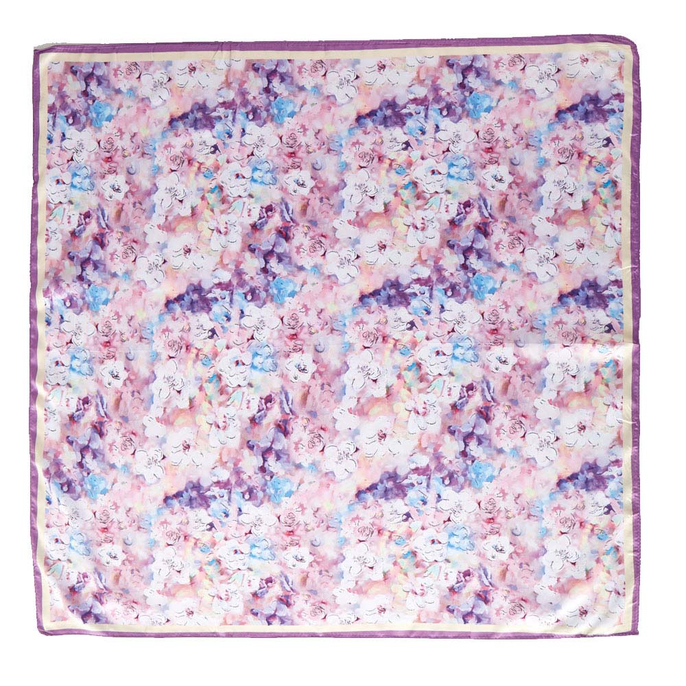 Blush Lavender Watercolor Floral Printed Square Silky Satin Scarf