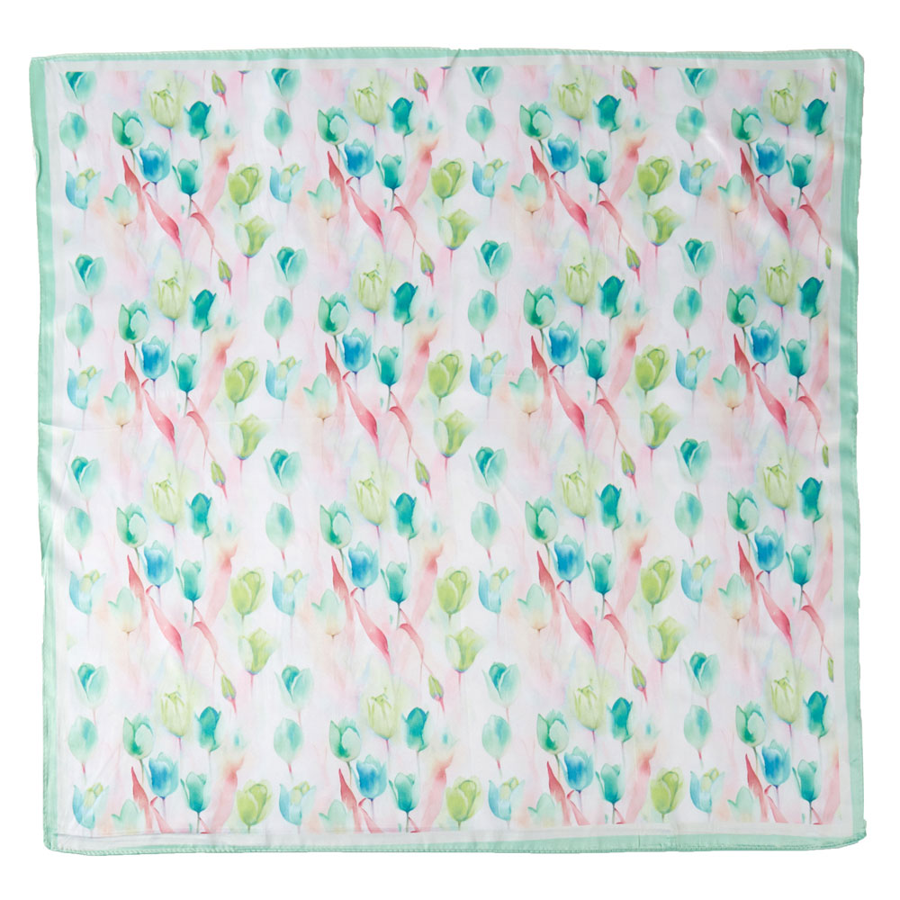 • This square scarf features a soft watercolor tulip design that adds a fresh, romantic touch to any look. Its lightweight feel and versatile styling options make it ideal as a neck scarf, hair accessory, or bag accent, bringing graceful charm to everyday outfits.