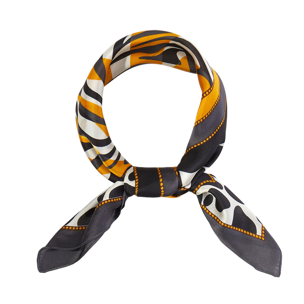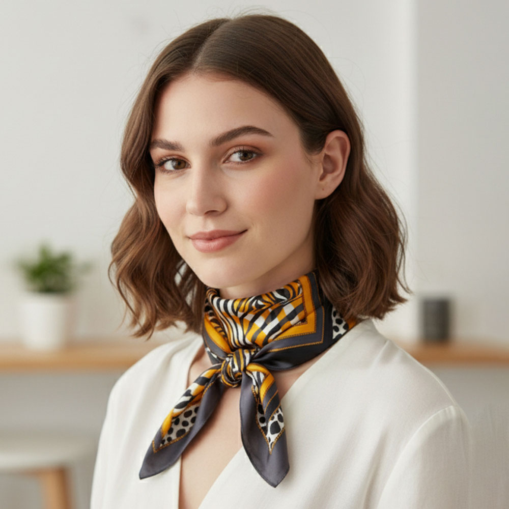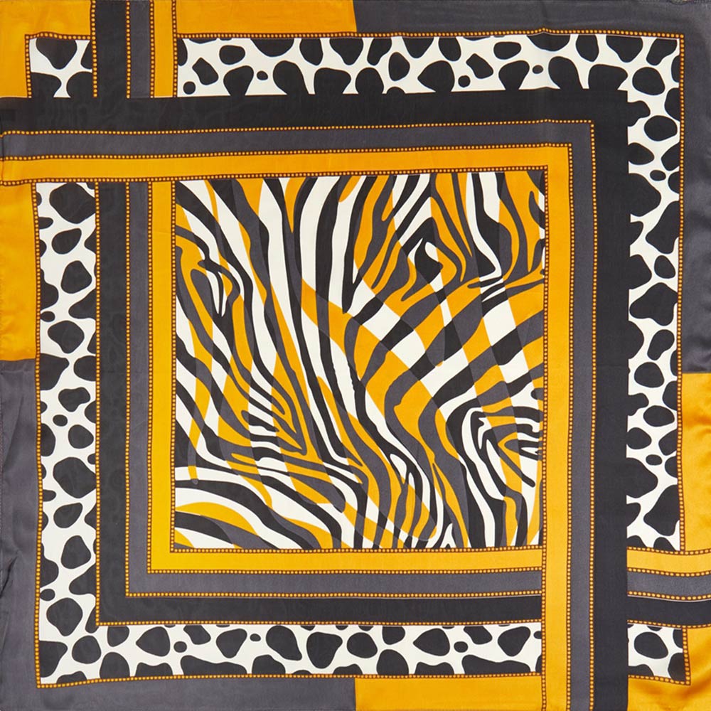 • Elevate your outfit with this striking zebra and leopard print square scarf featuring bold black, white, and gold patterns with sleek geometric accents. A statement accessory perfect for styling as a neck scarf, hair wrap, headband, or bag tie. Adds a chic, wild touch to casual looks, work outfits, and travel wardrobes while offering lightweight comfort and versatile wear.