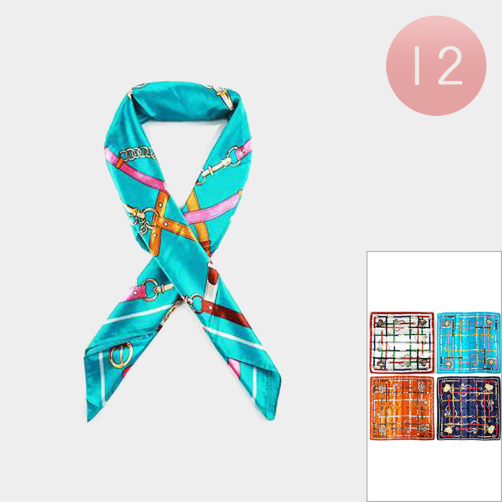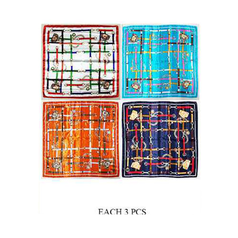 12PCS - Bohemian Patterned Square Silk Feel Scarves