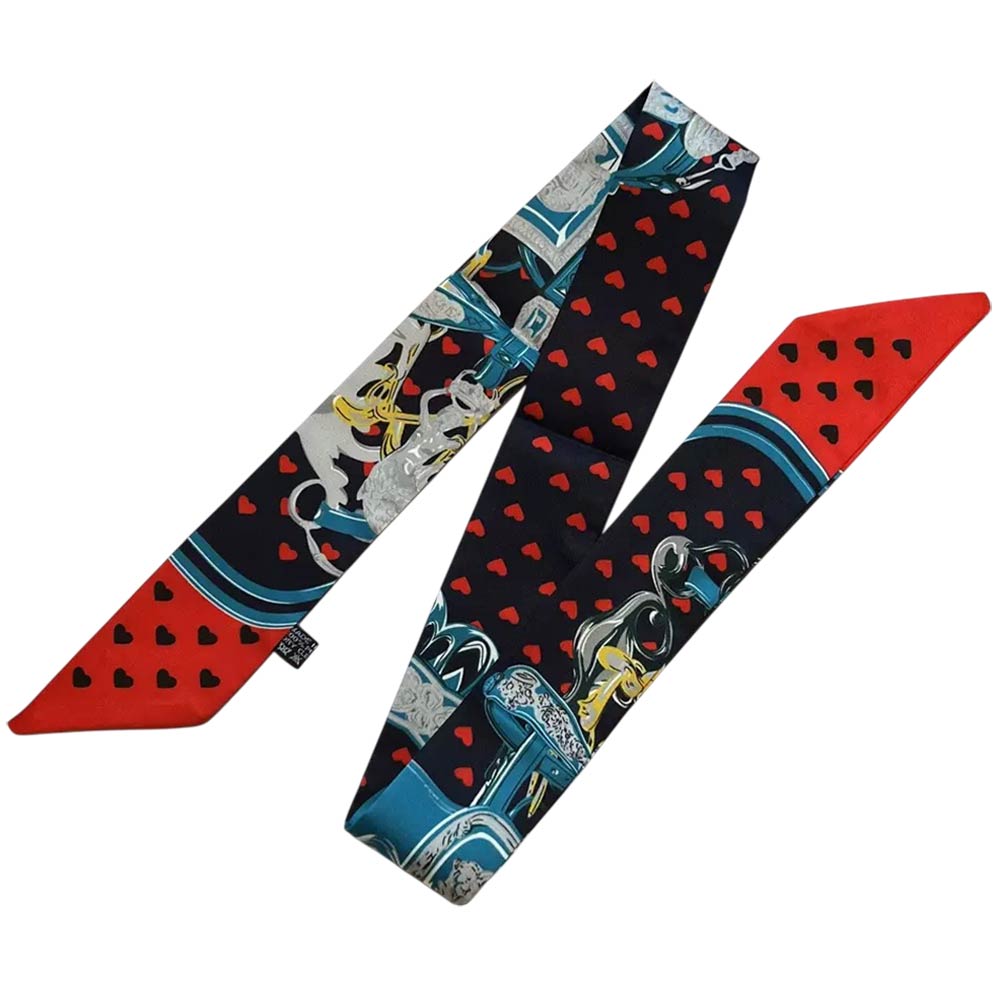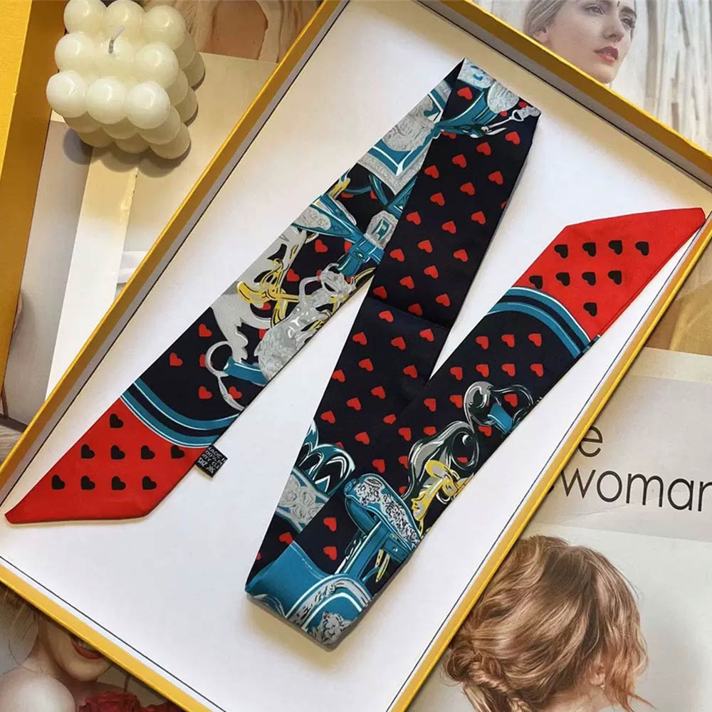 Details • Size : 2" X 35.4" • Material : 100% Polyester • This equestrian-inspired twilly scarf features an elegant saddle, strap, and buckle motif designed for versatile styling. Ideal for handbags, wrists, ponytails, or neck wear, it adds a refined accent for everyday outfits, gifting, travel styling, and boutique merchandising.