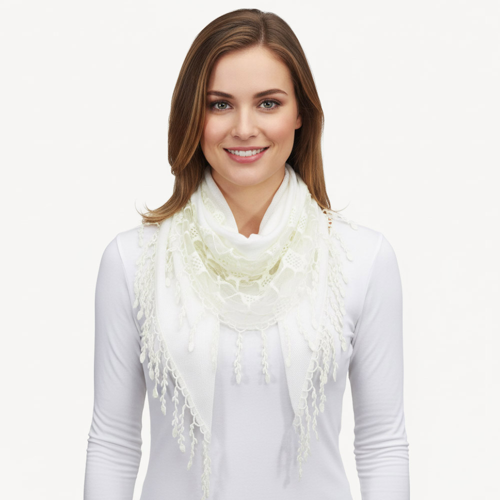 Fringe Detail Triangle Lace Scarf