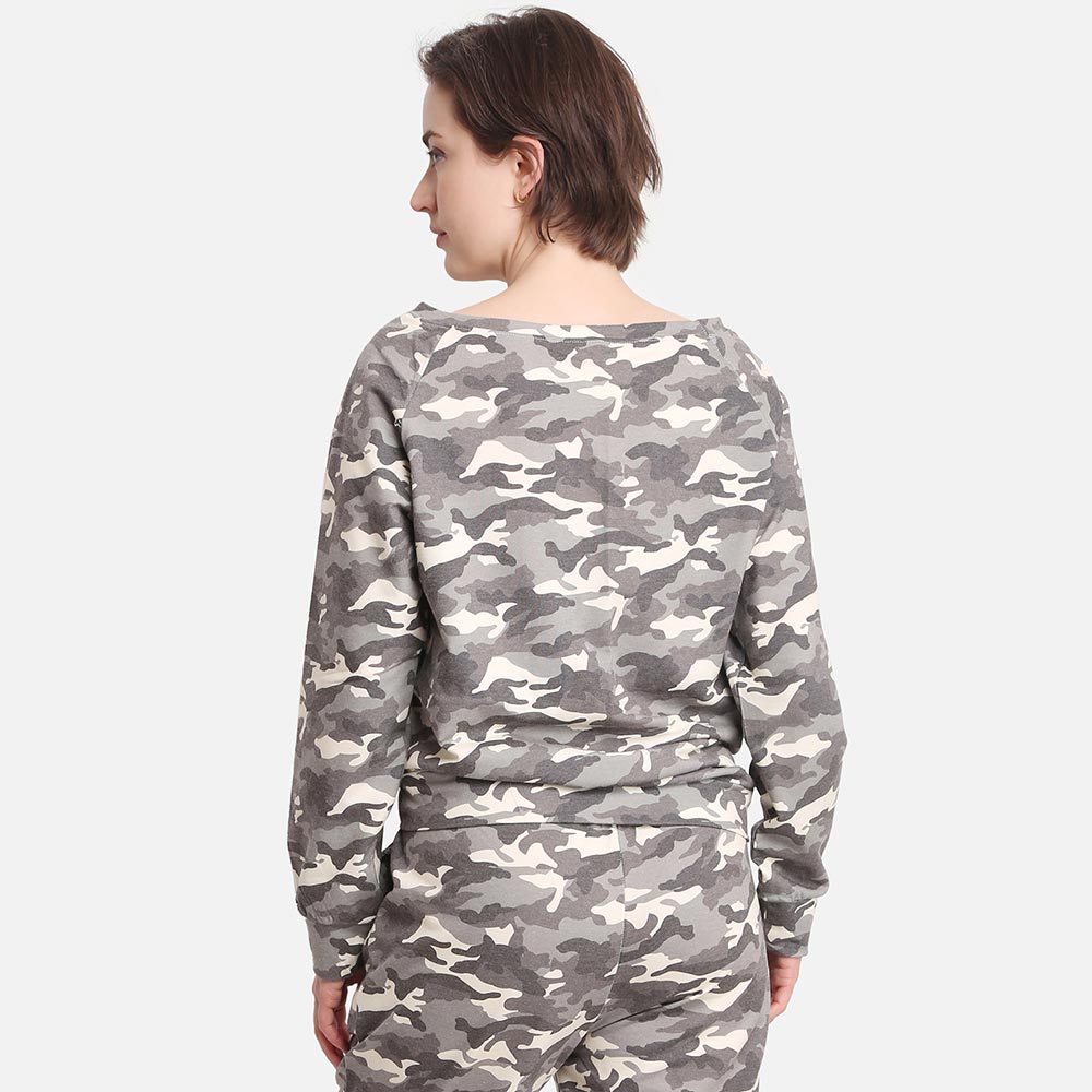 Camouflage Patterned Boat Neck Loungewear Sweatshirts Top
