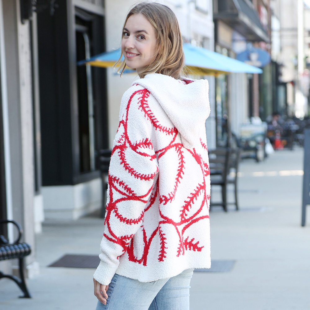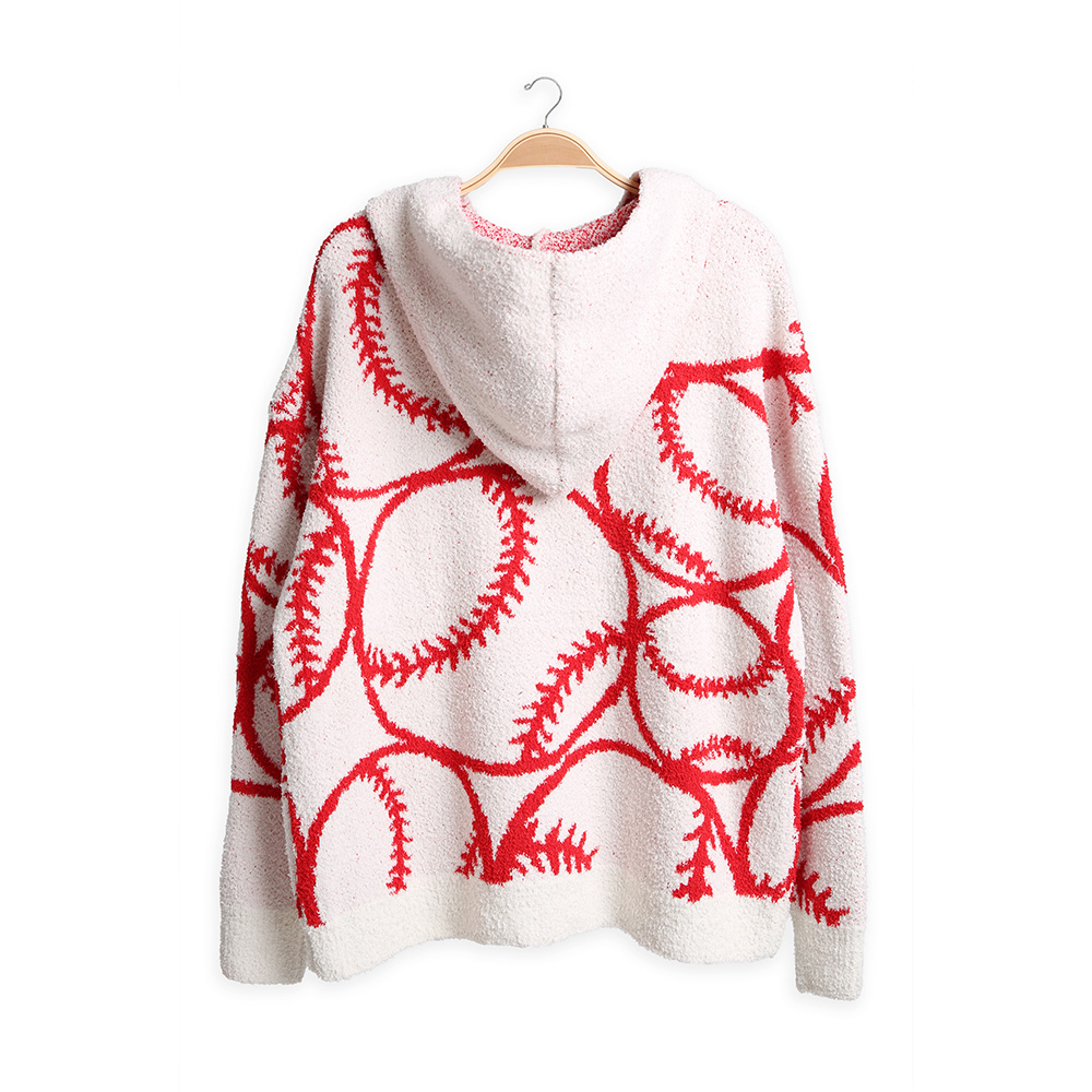 Details • Size : One Size • Material : 100% Poly.Microfiber • Add sporty flair to your casual looks with this cozy hooded pullover featuring an allover baseball stitch design. Soft, textured fabric, relaxed fit, and a kangaroo pocket make it a perfect choice for lounging, layering, or showing off team spirit in everyday comfort.