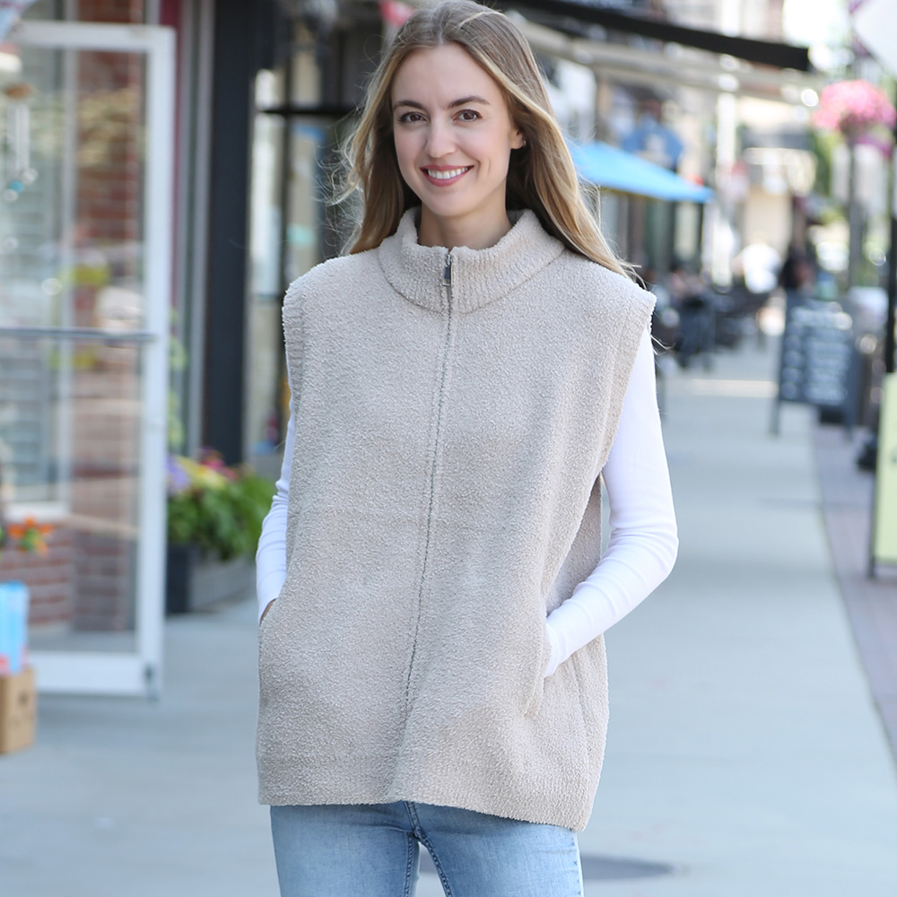 Cozy Solid Oversized Zipper Front Pocket Sweater Vest
