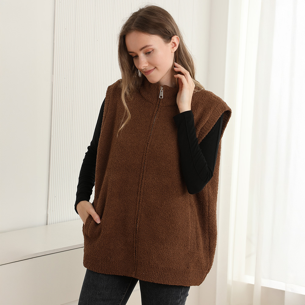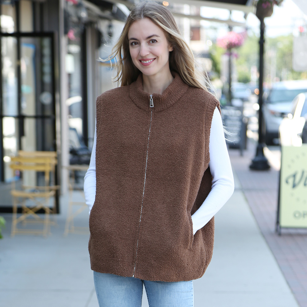 Cozy Solid Oversized Zipper Front Pocket Sweater Vest