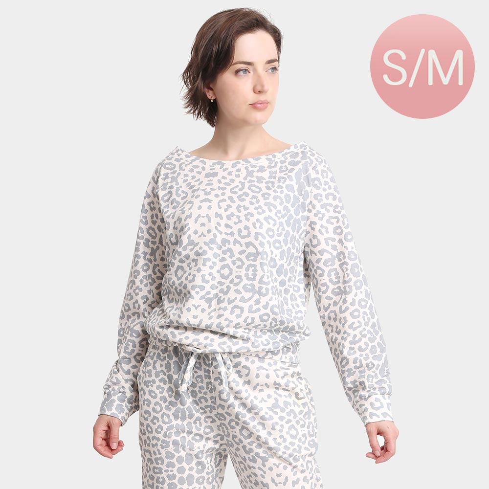 Leopard Patterned Boat Neck Loungewear Sweatshirts Top