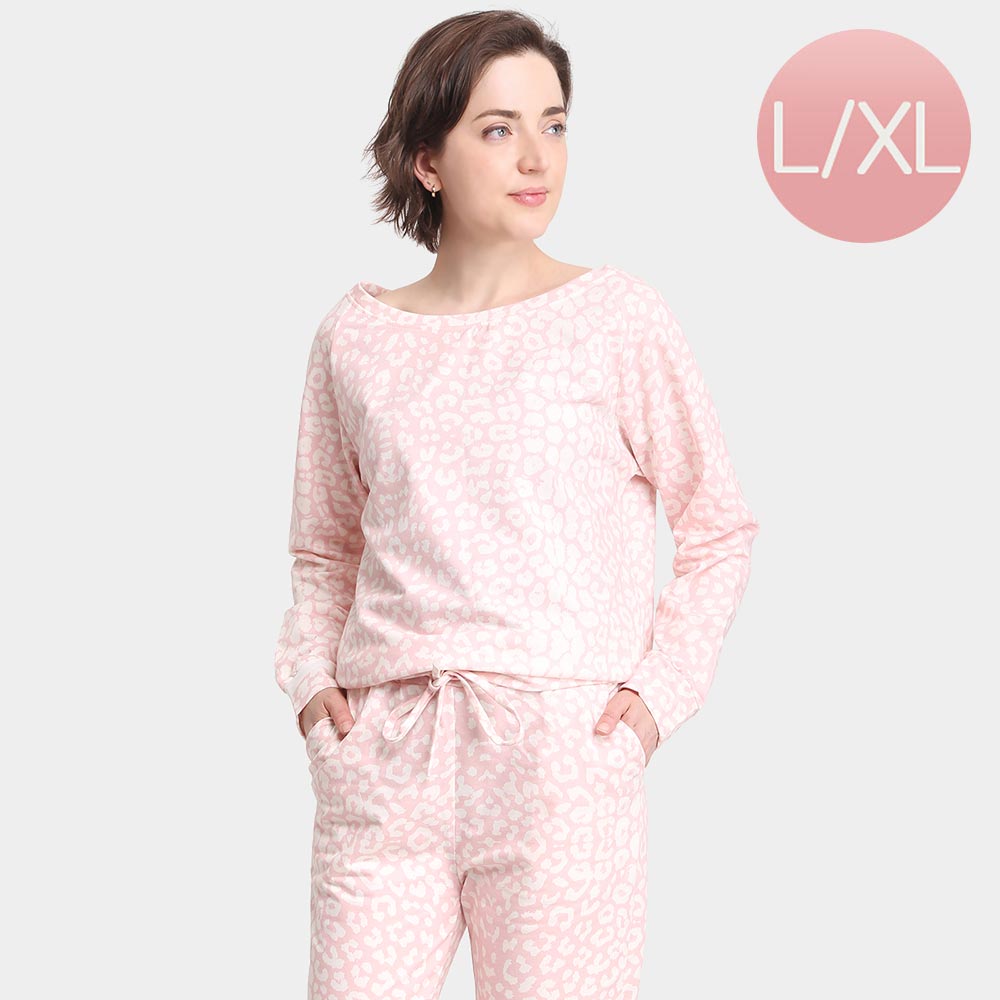 Leopard Patterned Boat Neck Loungewear Sweatshirts Top