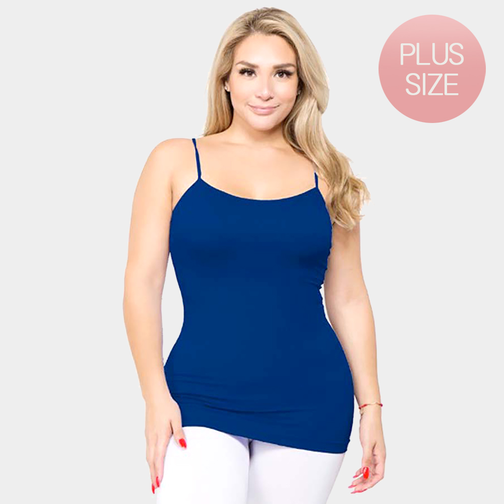 Details • Size : Plus Size • Content : 92% Nylon / 8% Spandex • Spaghetti Straps • Seamless design for extra comfort • Longline hem • Soft and Stretchy • Perfect For Layering under Sheer Tops or Itself