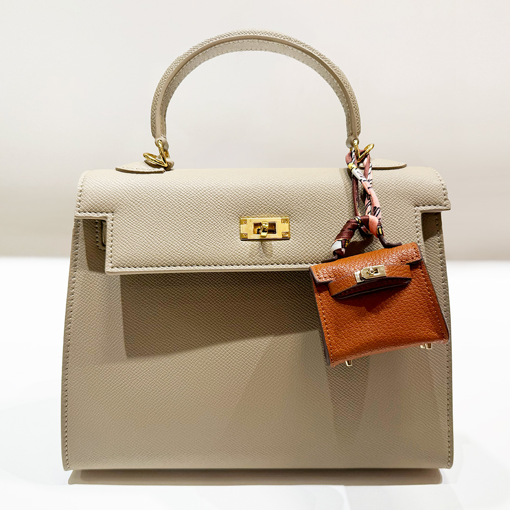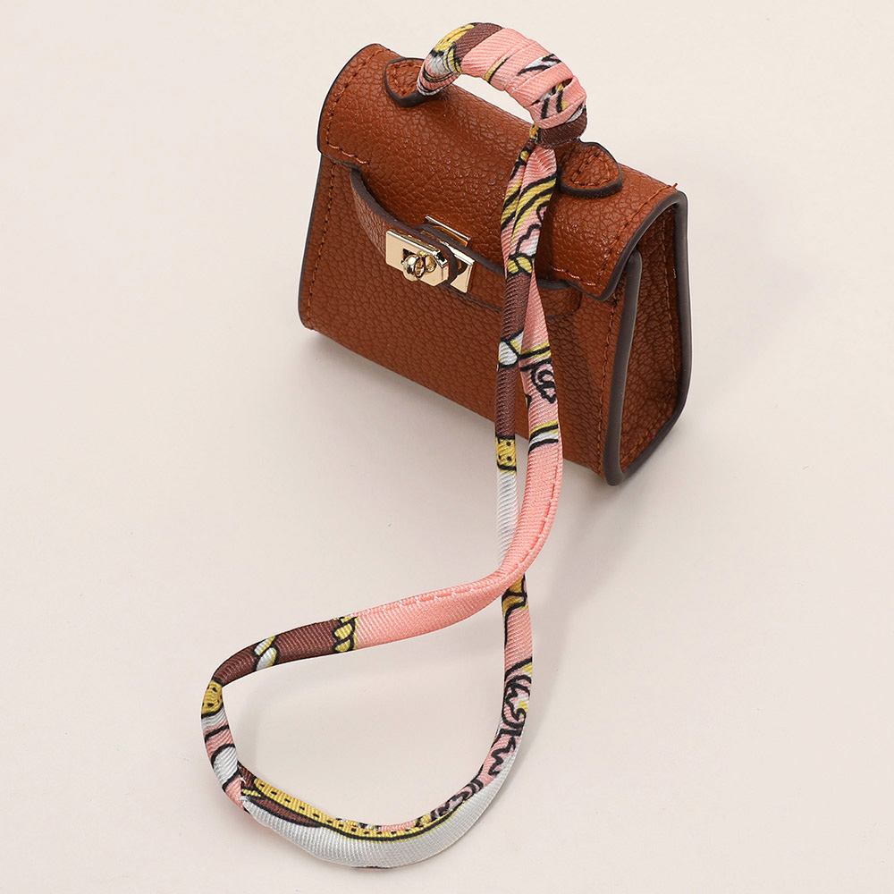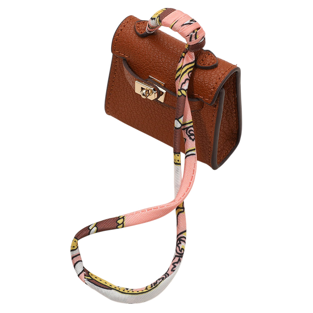 Details • Size : 2.2" X 2.6" X 1" • Top Handle Size : 0.75" L • Strap Size : 2" L / Detachable, Fabric scarf-style strap for easy attachment • Miniature handbag-style lock closure • Decorative metal rivets and clasp hardware detail • fits Earphone, Earbuds, Small Accessory • Can be used as a keychain, bag charm, or collectible accessory • Material : 100% Polyurethane