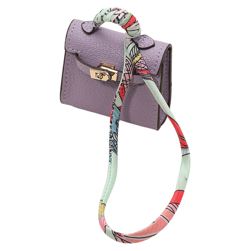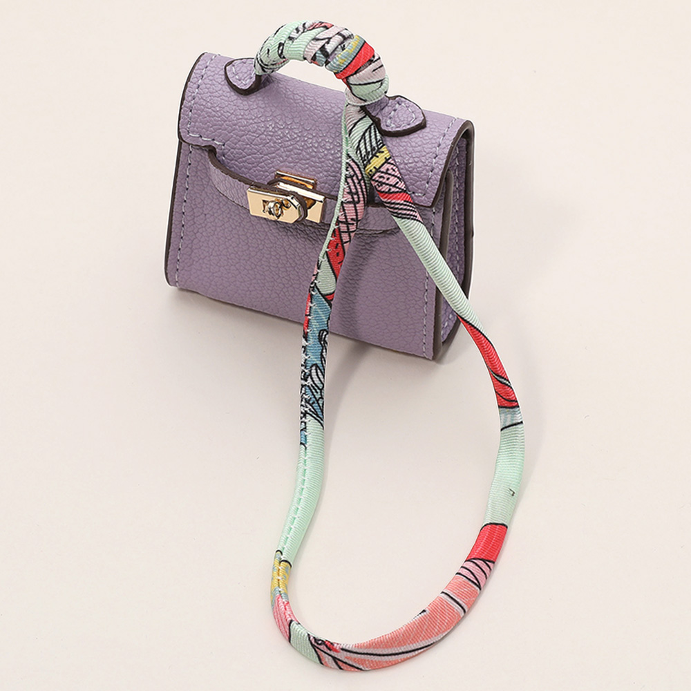 Details • Size : 2.2" X 2.6" X 1" • Top Handle Size : 0.75" L • Strap Size : 2" L / Detachable, Fabric scarf-style strap for easy attachment • Miniature handbag-style lock closure • Decorative metal rivets and clasp hardware detail • fits Earphone, Earbuds, Small Accessory • Can be used as a keychain, bag charm, or collectible accessory • Material : 100% Polyurethane