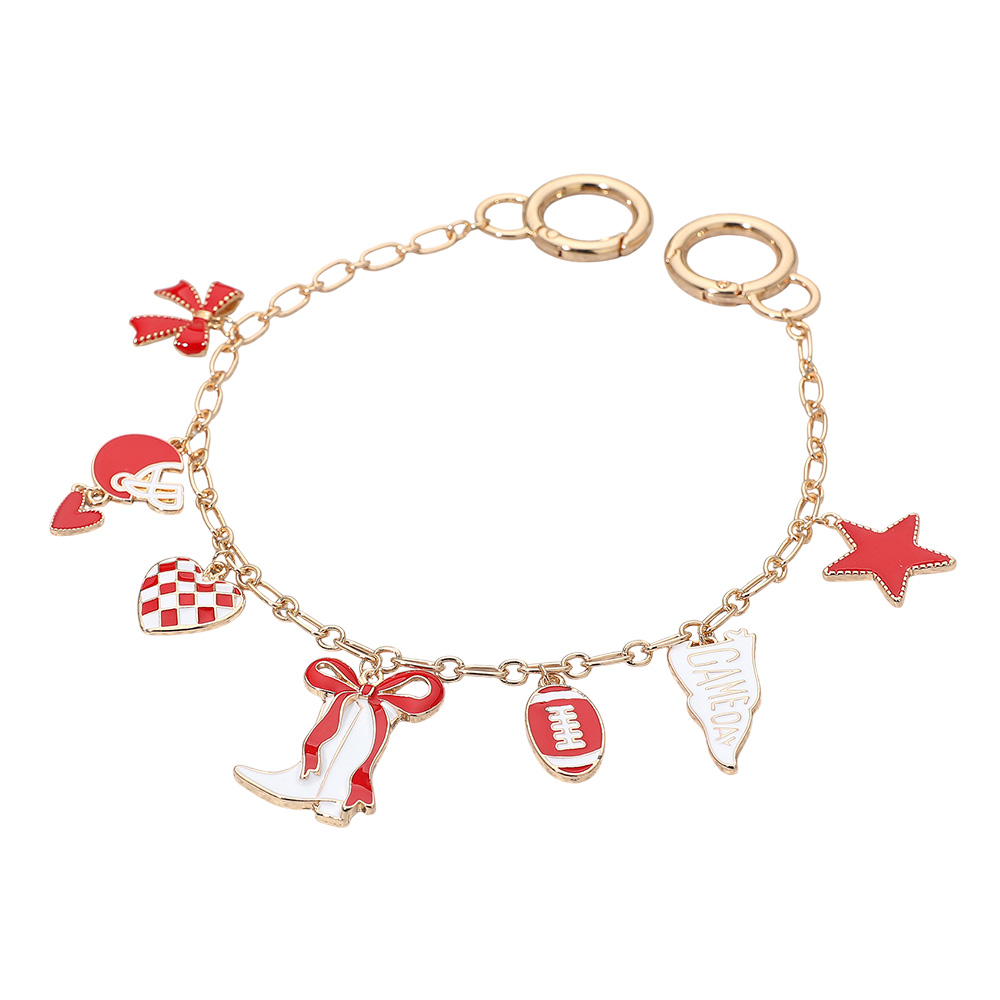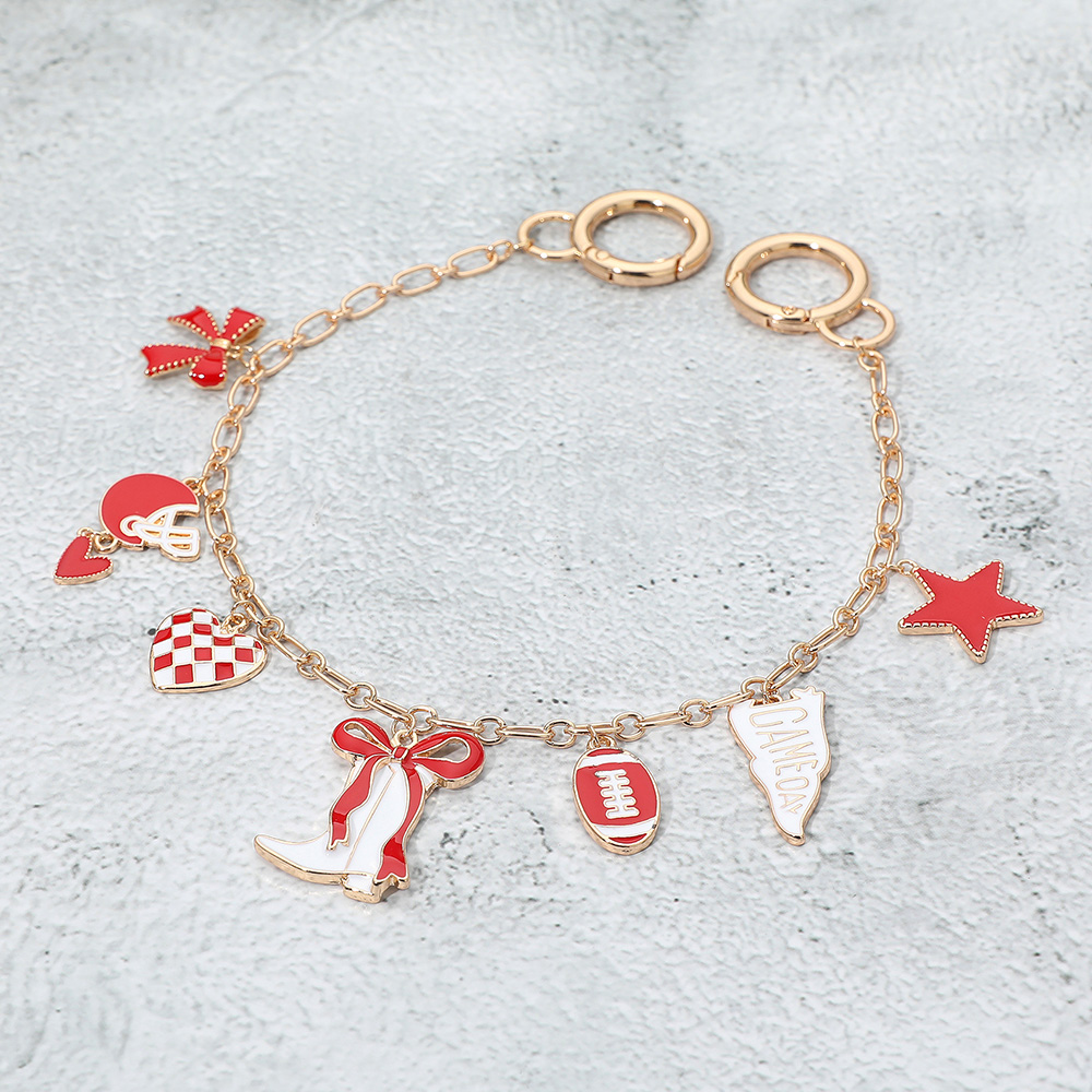 Details • Size : 13.5" L • Decor Size : 1.3" L • Bag charm featuring playful gameday accents including football, helmet, boots, stars, hearts, and cheer icons. A fun accessory to show team spirit, personalize bags, and add a sporty touch to gameday outfits. • Lead and Nickel Compliant