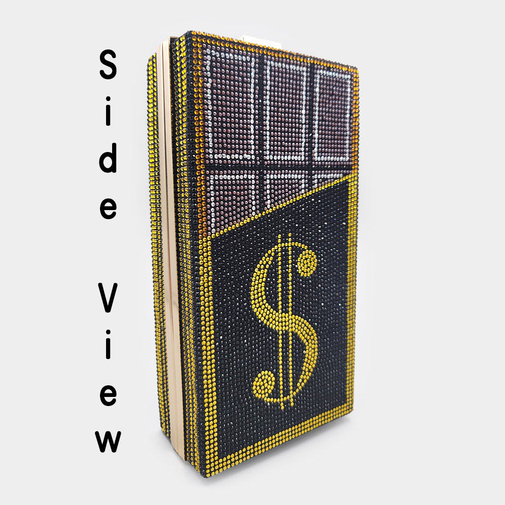 Bling Dollar Sign Chocolate Vertical Clutch Bag