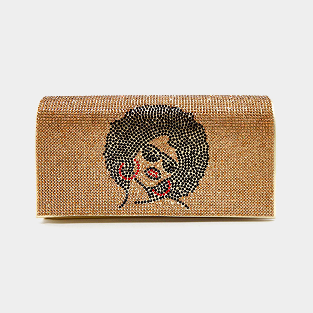 Bling Afro Girl Evening Clutch Crossbody Bag