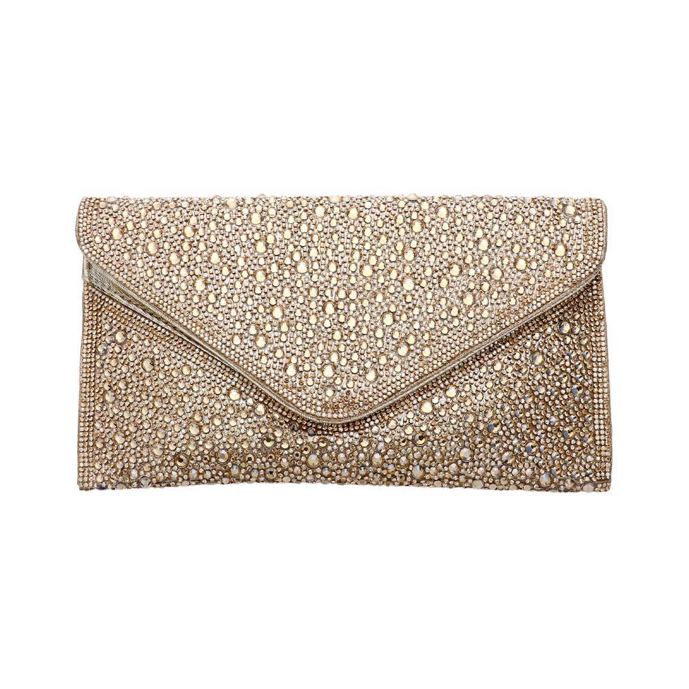 Bling Stone Studded Flap Envelope Evening Clutch Crossbody Bag