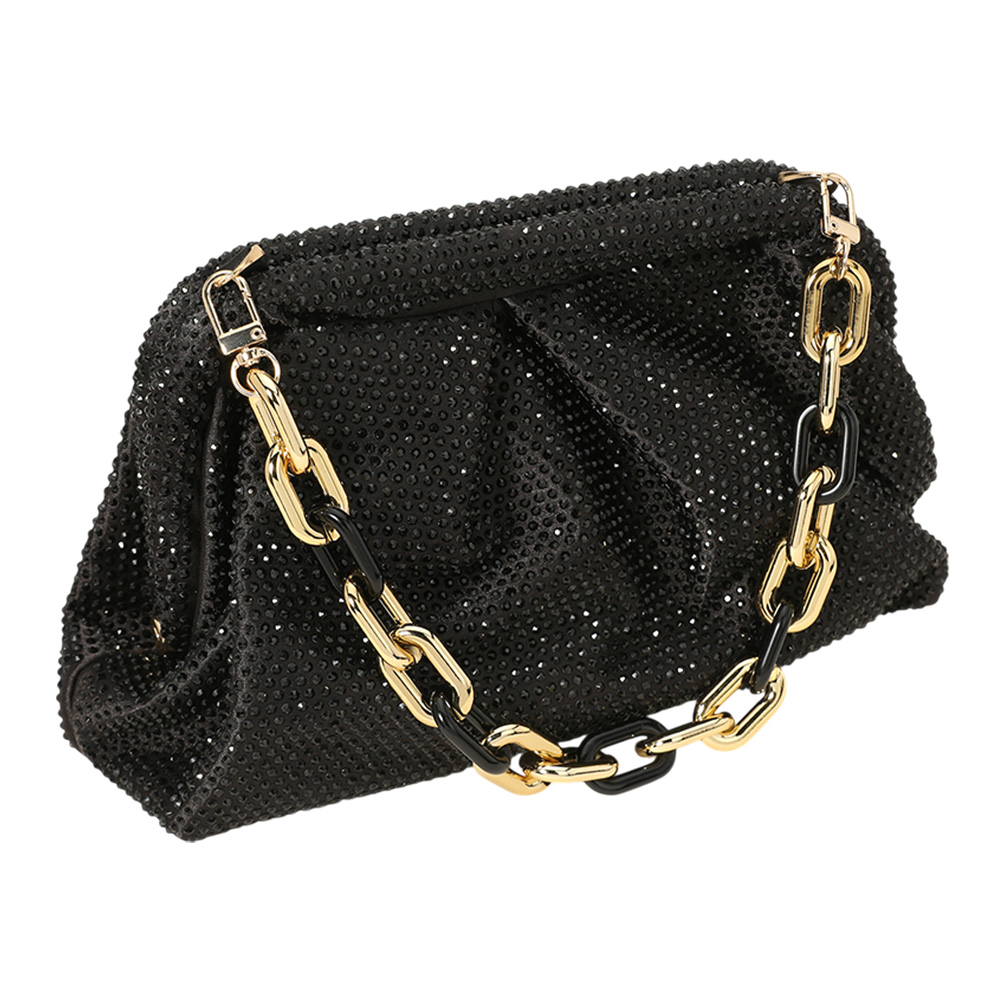 Bling Studded Chunky Chain Strap Accented Evening Clutch Bag / Crossbody Bag