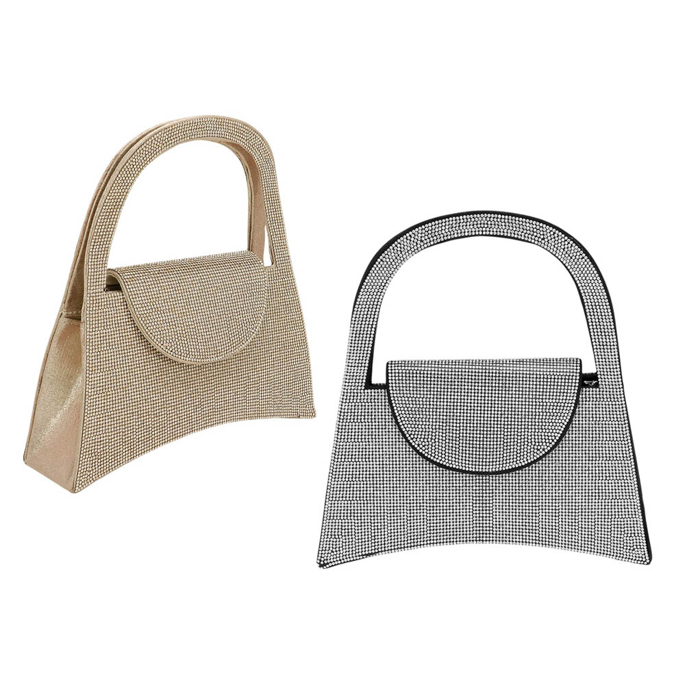 • Discover a refined evening bag featuring a sculpted handle, sparkling exterior, secure magnetic closure, and organized interior pocket. Designed for special occasions, this statement accessory adds sophistication and functional style to any elevated look.