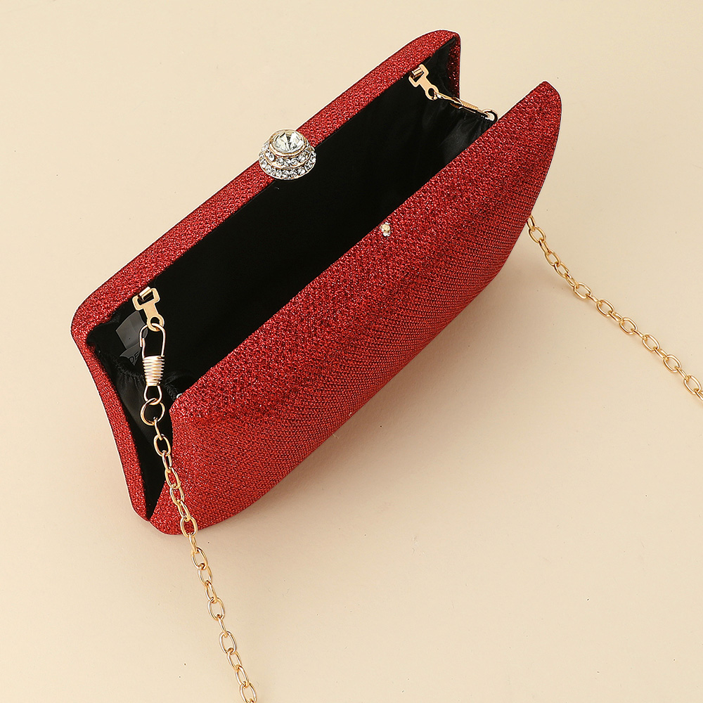 • Chic evening clutch designed with a sparkling rhinestone clasp and detachable chain strap for versatile wear. Perfect for weddings, galas, or special events, this stylish handbag offers refined elegance while keeping your essentials secure in a sleek, timeless silhouette.