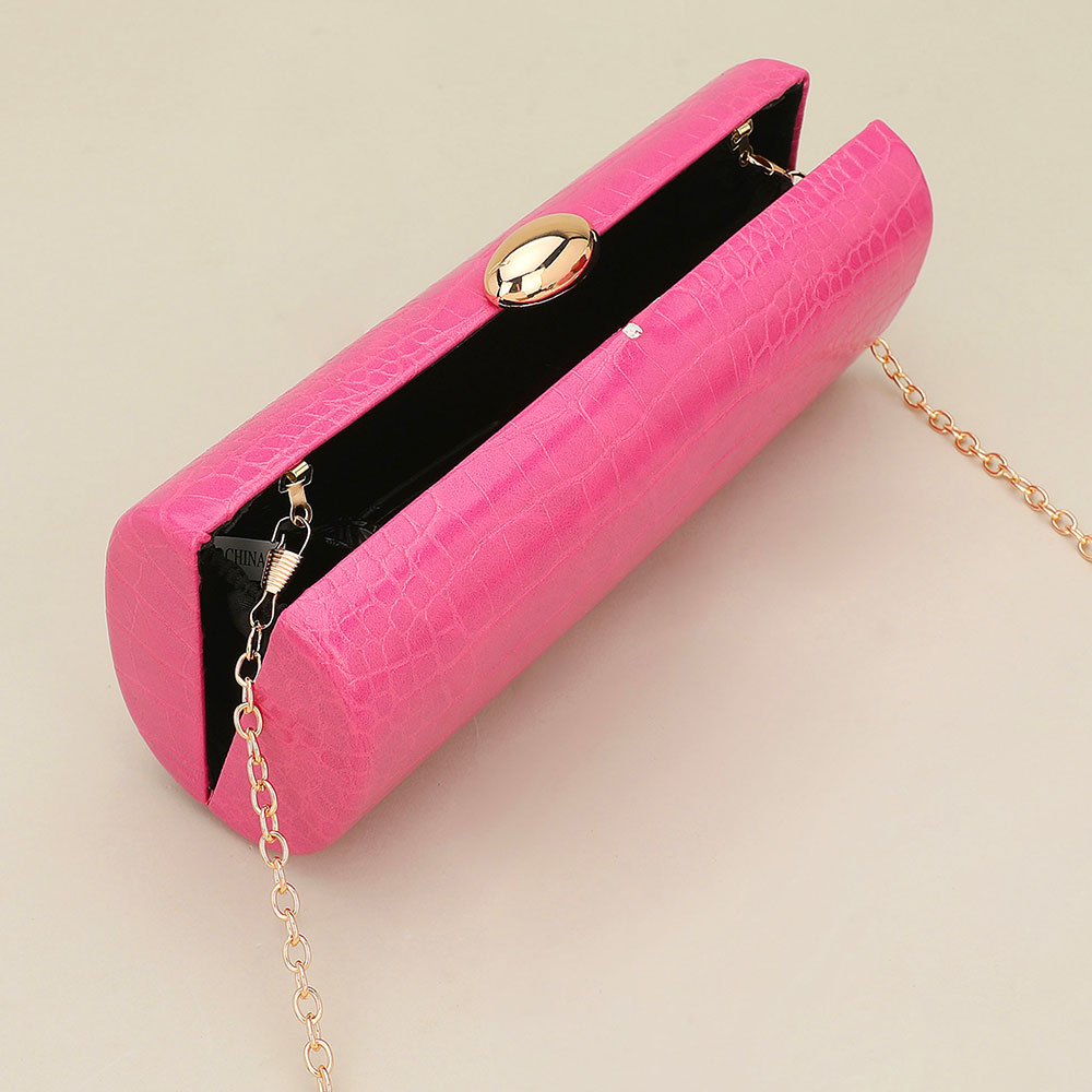 Details • Size : 9" X 3.75" X 2.5" • Strap Size : 46" L / Detachable • Clasp Closure • Elevate your evening look with this textured chain clutch bag featuring a sleek structured silhouette and elegant clasp closure. Designed to carry essentials in style, it transitions effortlessly from special events to nights out, offering a chic accessory perfect for dressing up any outfit or gifting.