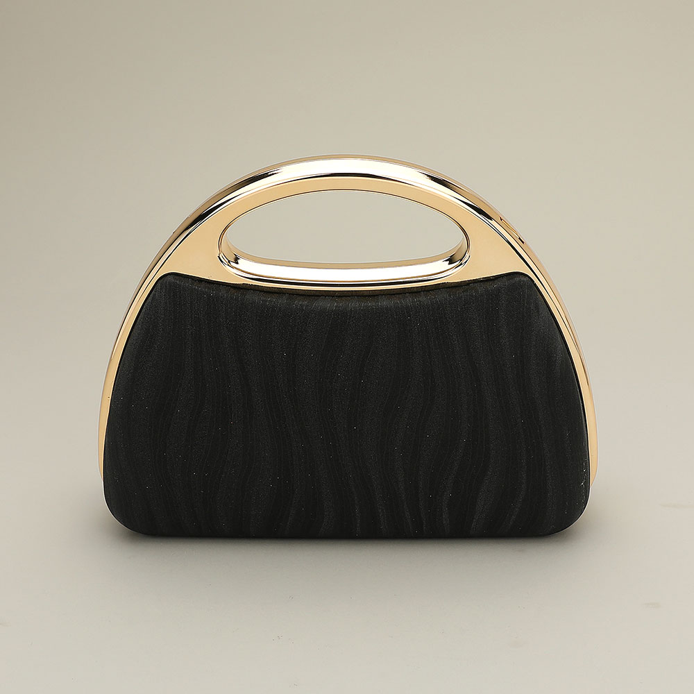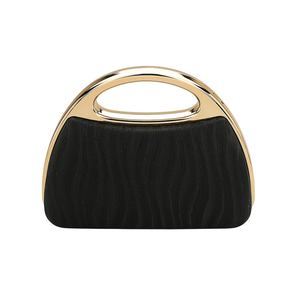 Details • Size : 8.5" X 6.5" X 3" • Top Handle Size : 2" L • Strap Size : 46"L • Clasp Closure • A refined evening handbag featuring a sculpted silhouette, metallic handle, and shimmering textured body. Designed for formal events, it offers a polished finish and a detachable chain for versatile styling, keeping essentials organized while enhancing any sophisticated look.
