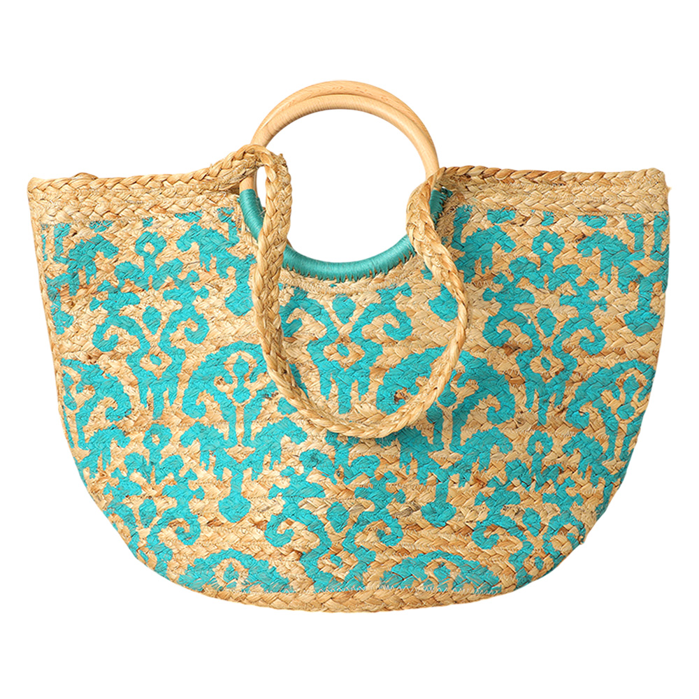 Details • Size : 18.5" X 12" X 9.75" • Wooden Handle Size : 5" L • Shoulder Strap Size : 10.5" L • Stylish and spacious, this woven tote bag features an intricate embroidered pattern and sturdy circular handles. Perfect for beach days, shopping, or casual outings, it blends fashion and function for an effortlessly chic look. Lightweight and easy to carry all day • Made In India