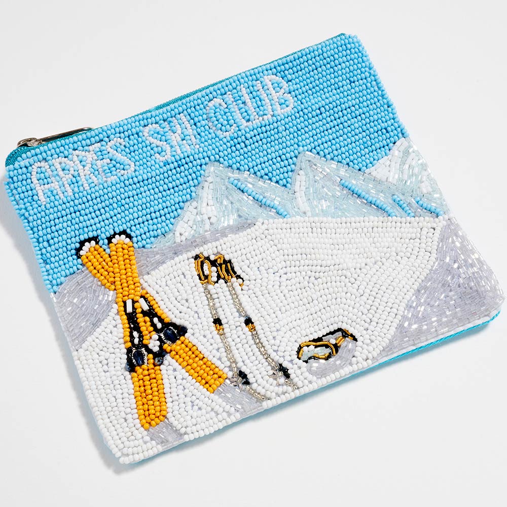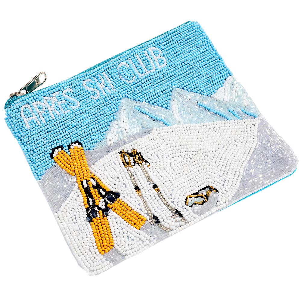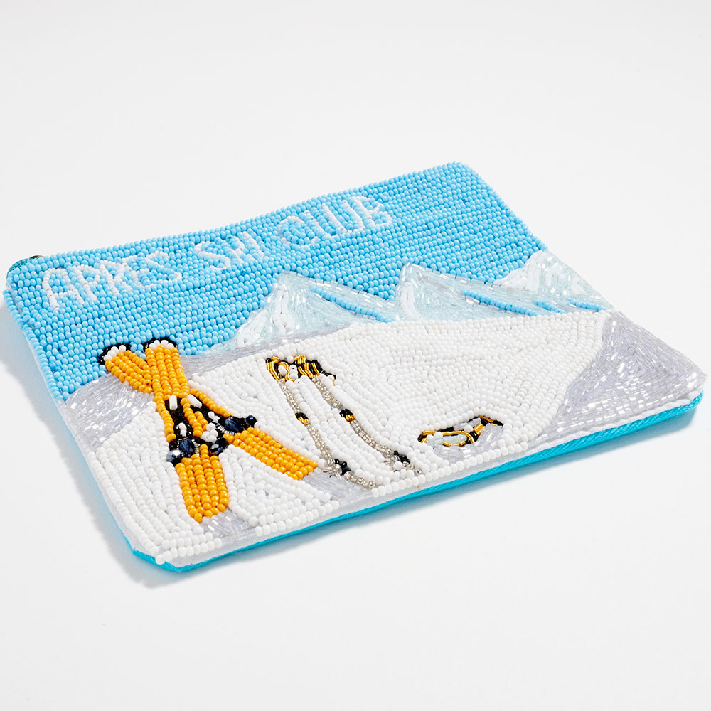 Details • Size : 5.5" X 4.5" (appx) • No Inside Pocket • Beads On Front Only • Bag Only (items are not included) • Zipper Closure • Stylish zip pouch featuring detailed beaded artwork and a playful après ski theme, designed for storing small essentials, cosmetics, or travel accessories. A standout accessory for resort shops, gift boutiques, and seasonal displays, offering eye-catching texture, practical use, and strong visual appeal for impulse and gift-driven retail. • Made In India