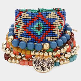 Polished Metal Accent Resin Pebble Beaded Stretch Bracelet