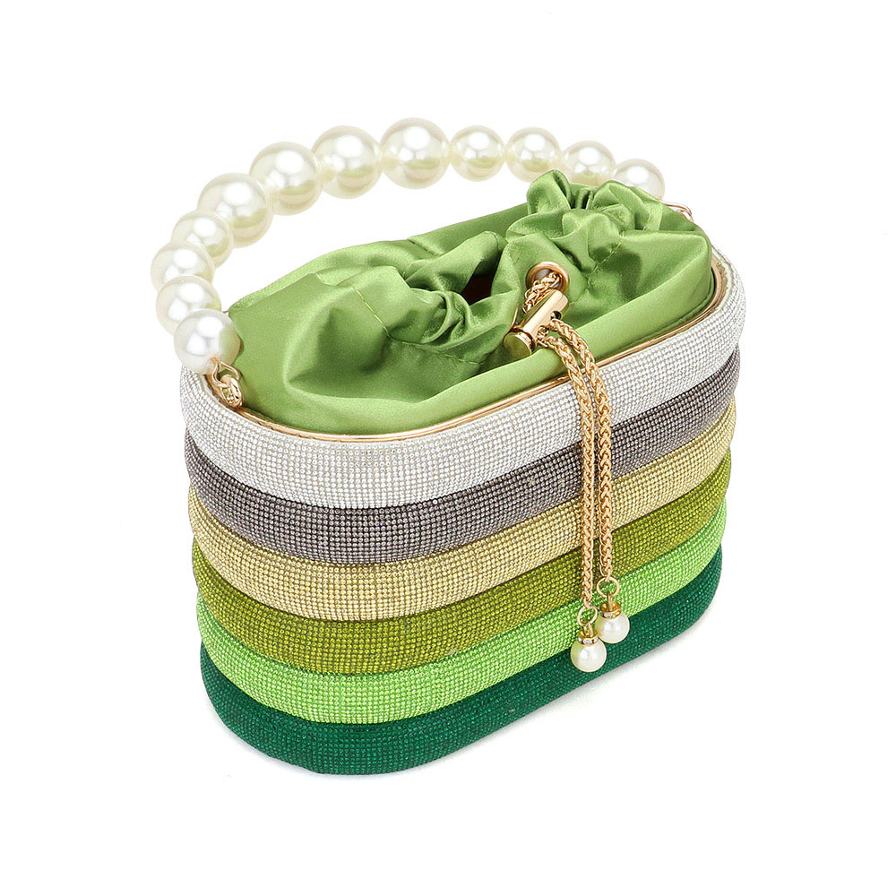 Bling Pearl Top Handle Drawstring Box Crossbody Bag