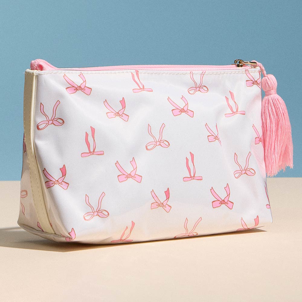 • Compact zip pouch designed for organizing makeup, toiletries, and daily essentials with ease. Features a secure zipper closure, roomy interior for travel or everyday use, and a decorative tassel accent for added style. Ideal for handbags, luggage, gym bags, or quick organization on the go.
