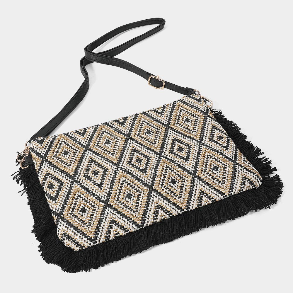 Diamond Checker Fringe Edge Detailed Crossbody Bag / Clutch Bag