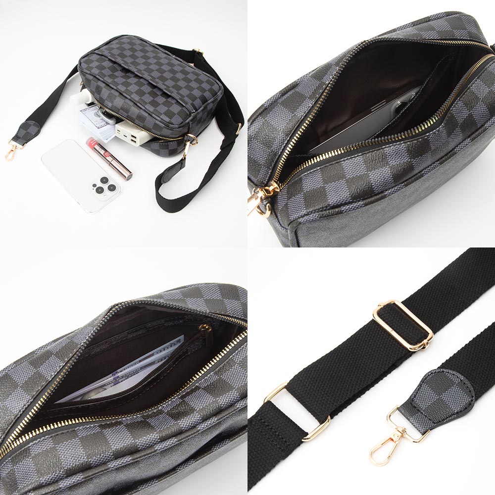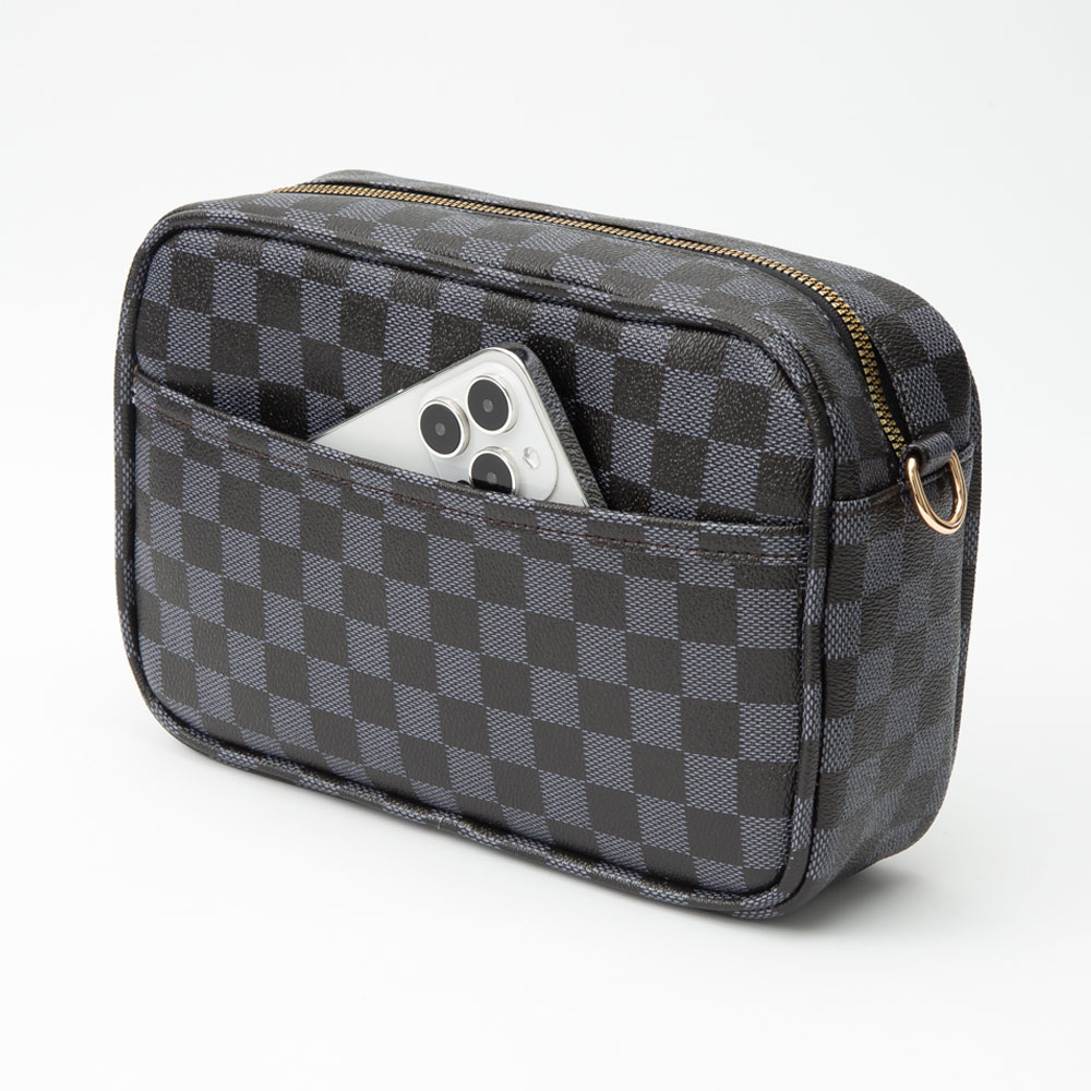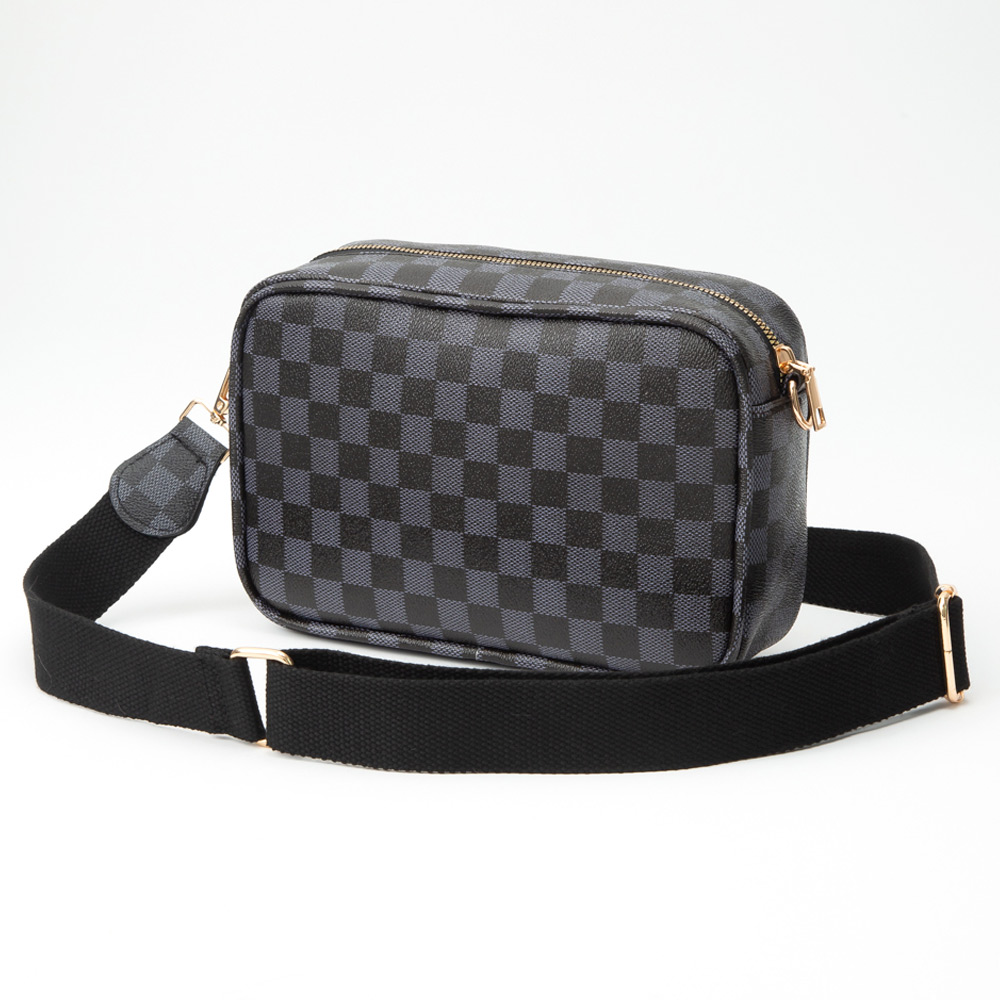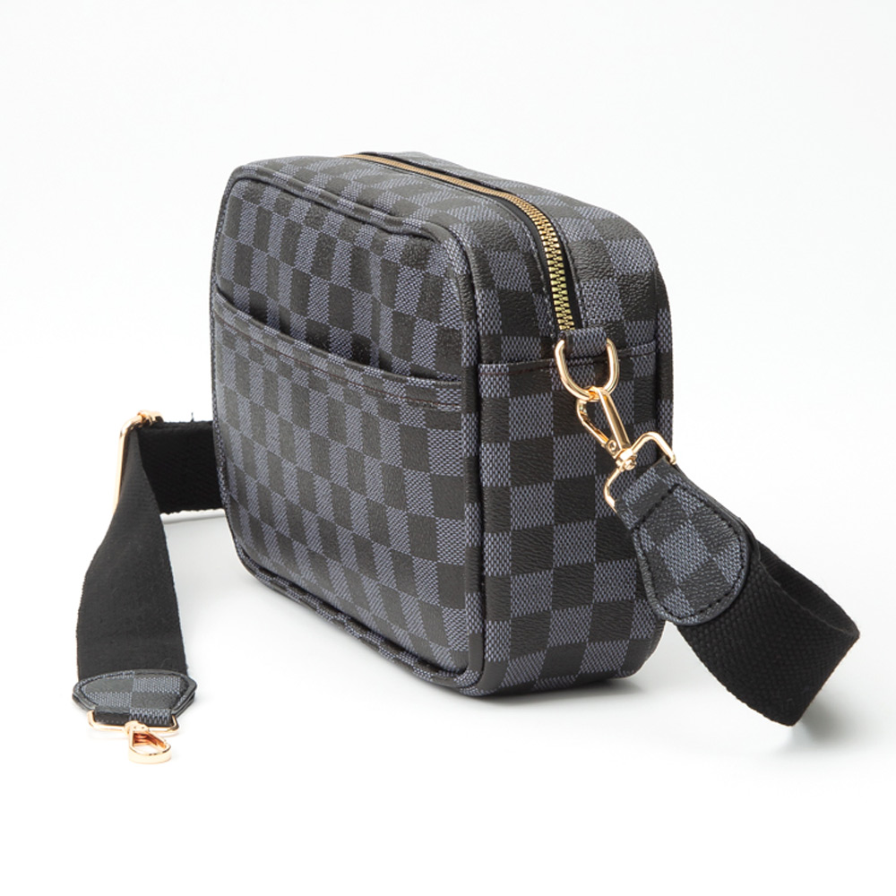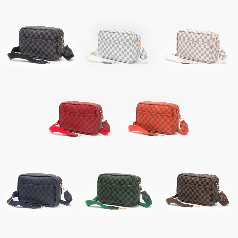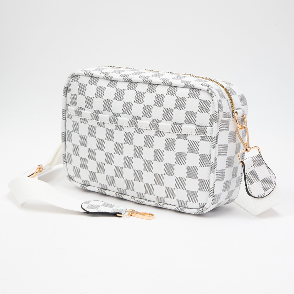 Faux Leather Checkered Pattern Rectangle Crossbody Bag
