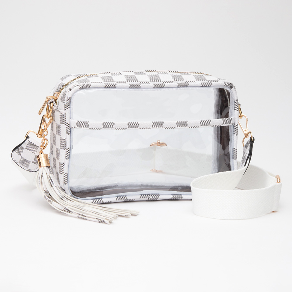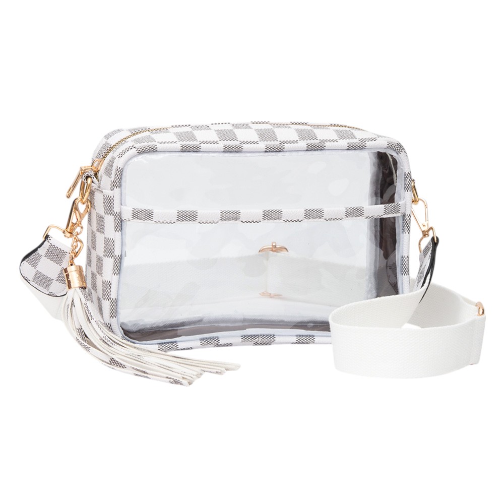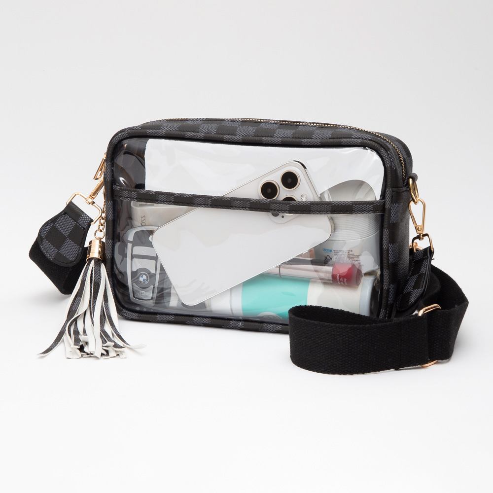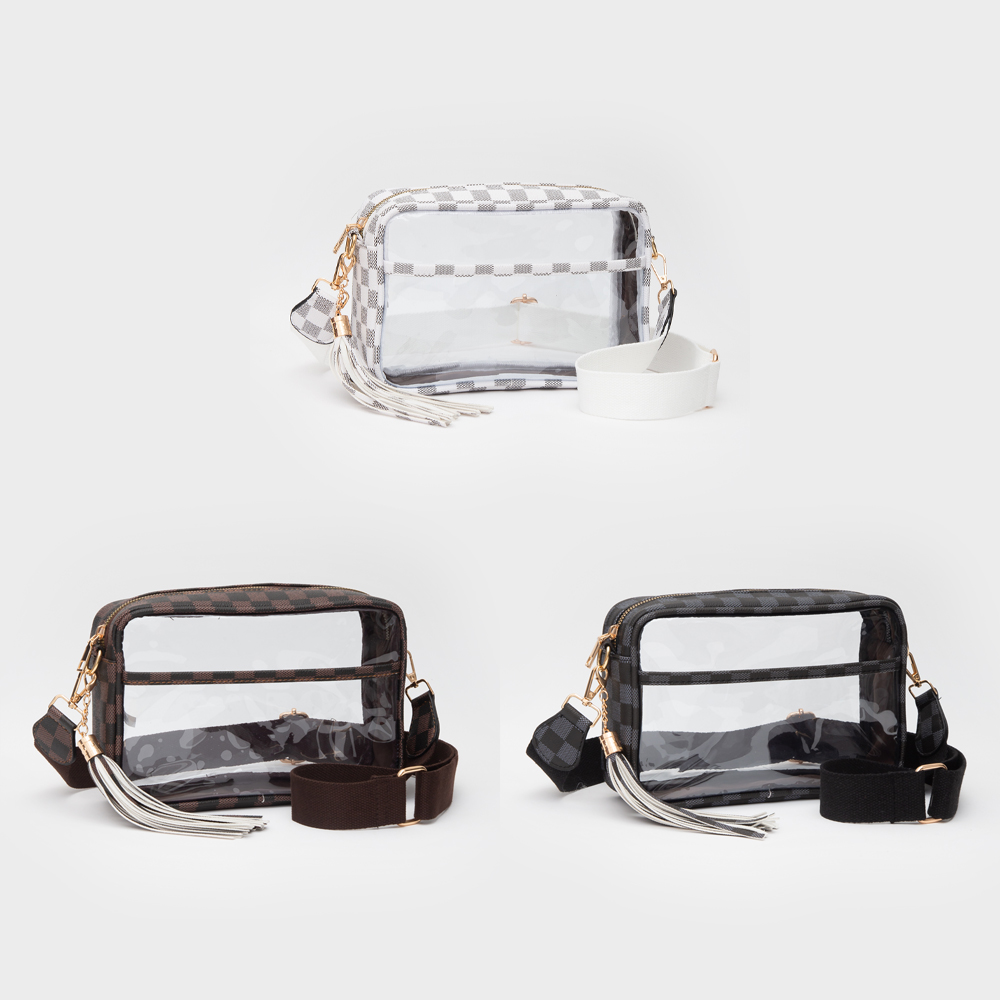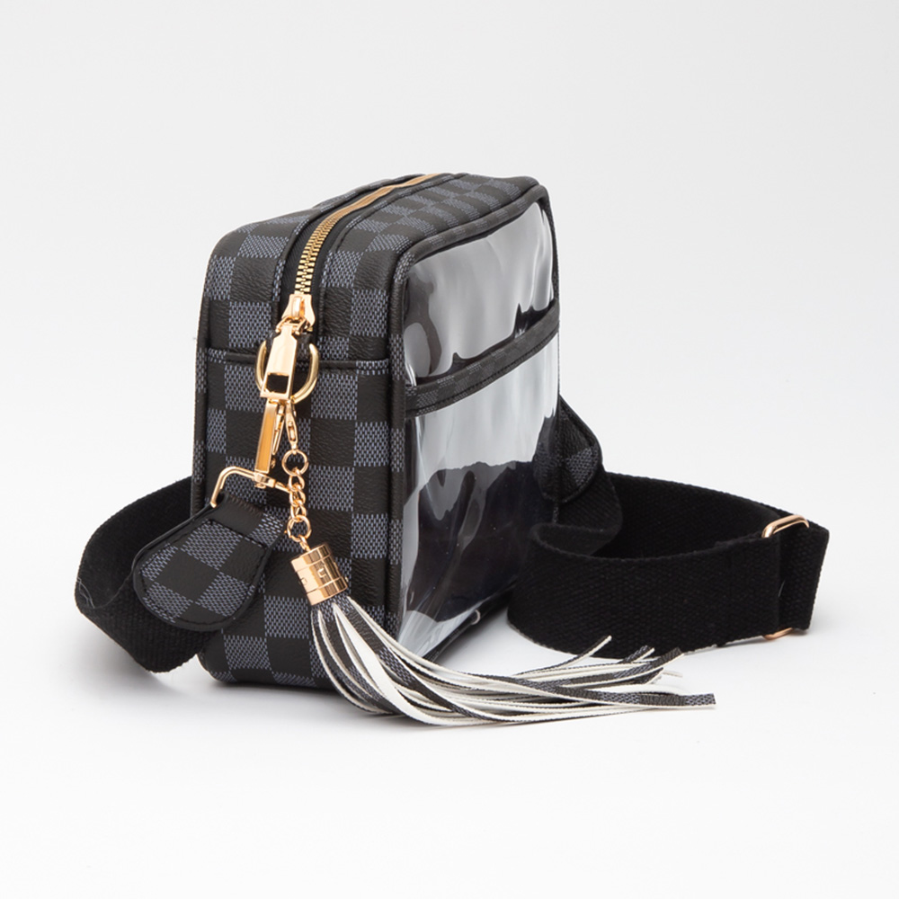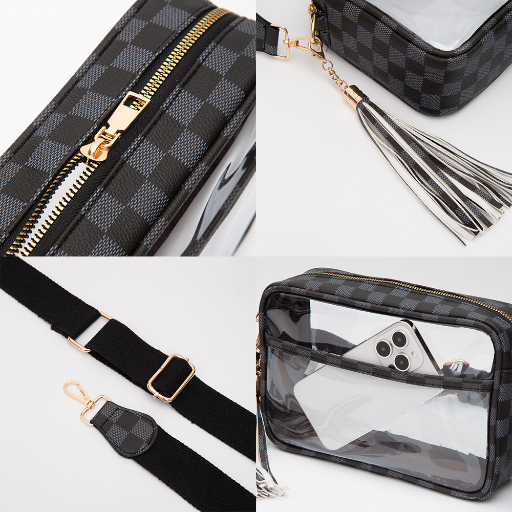 Faux Leather Checkered Printed Pointed Transparent Crossbody Bag / Pouch Bag / Toiletry Bag