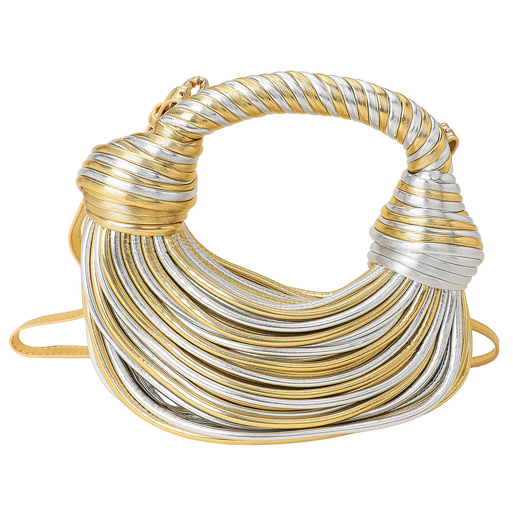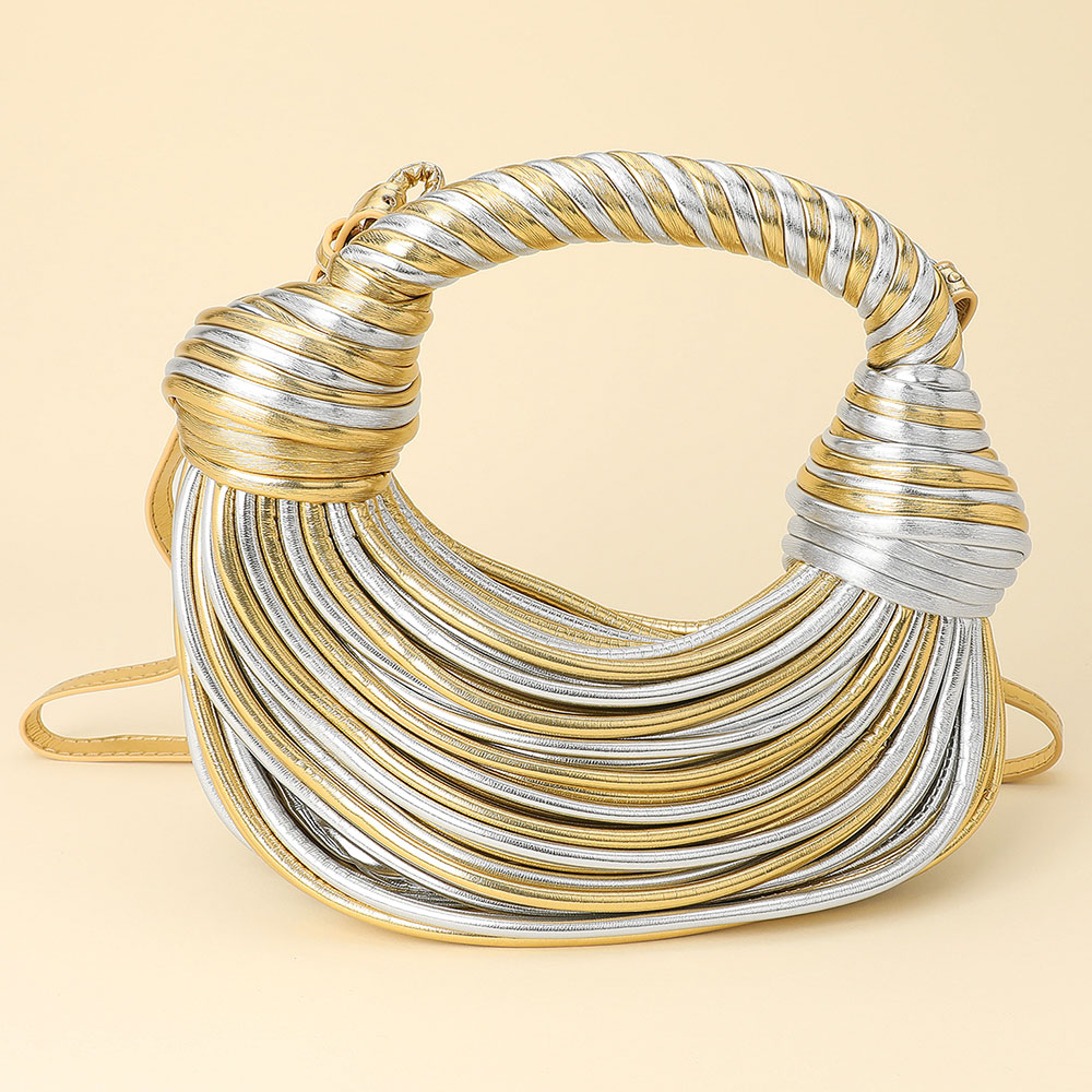 • Stand out with this textured statement shoulder bag featuring a sculpted design and intricate wrapped detailing. Its modern silhouette and artistic structure make it a versatile piece that adds a touch of high-fashion sophistication to any day or evening ensemble.