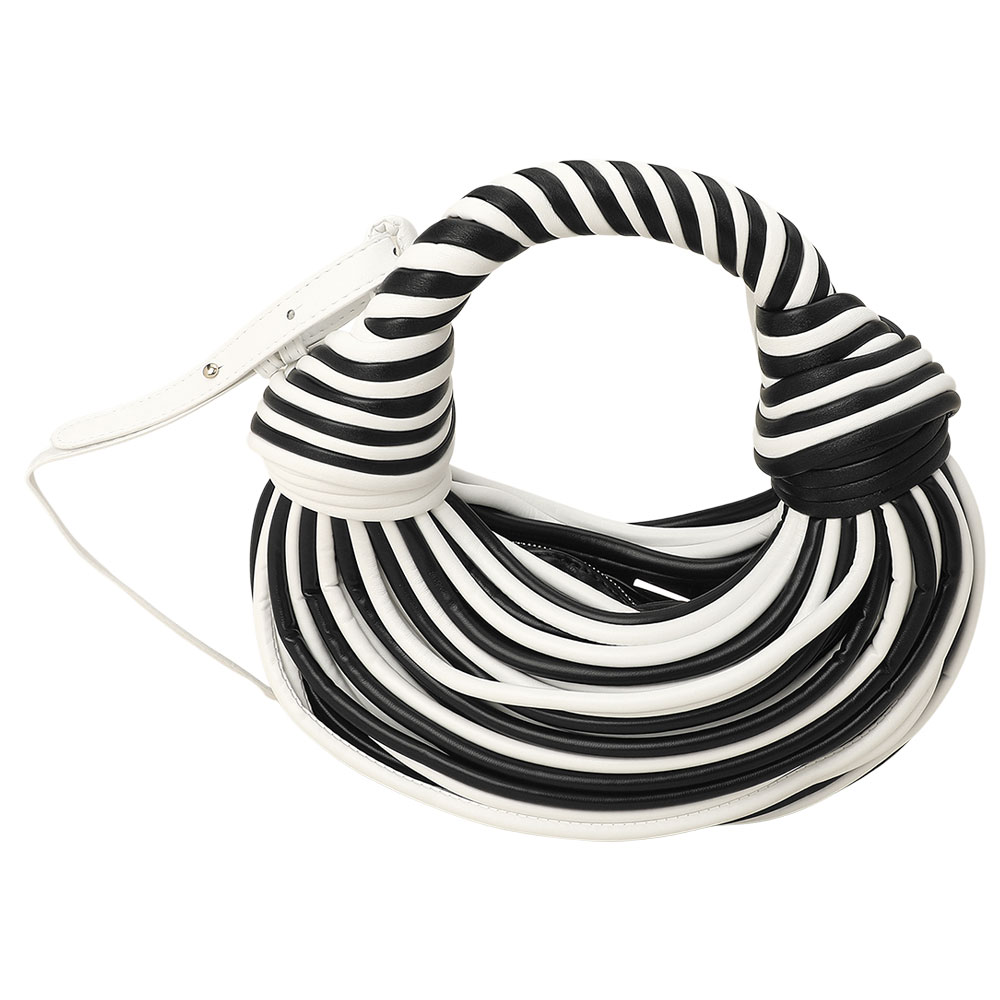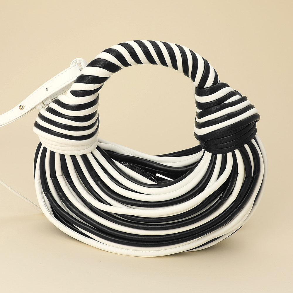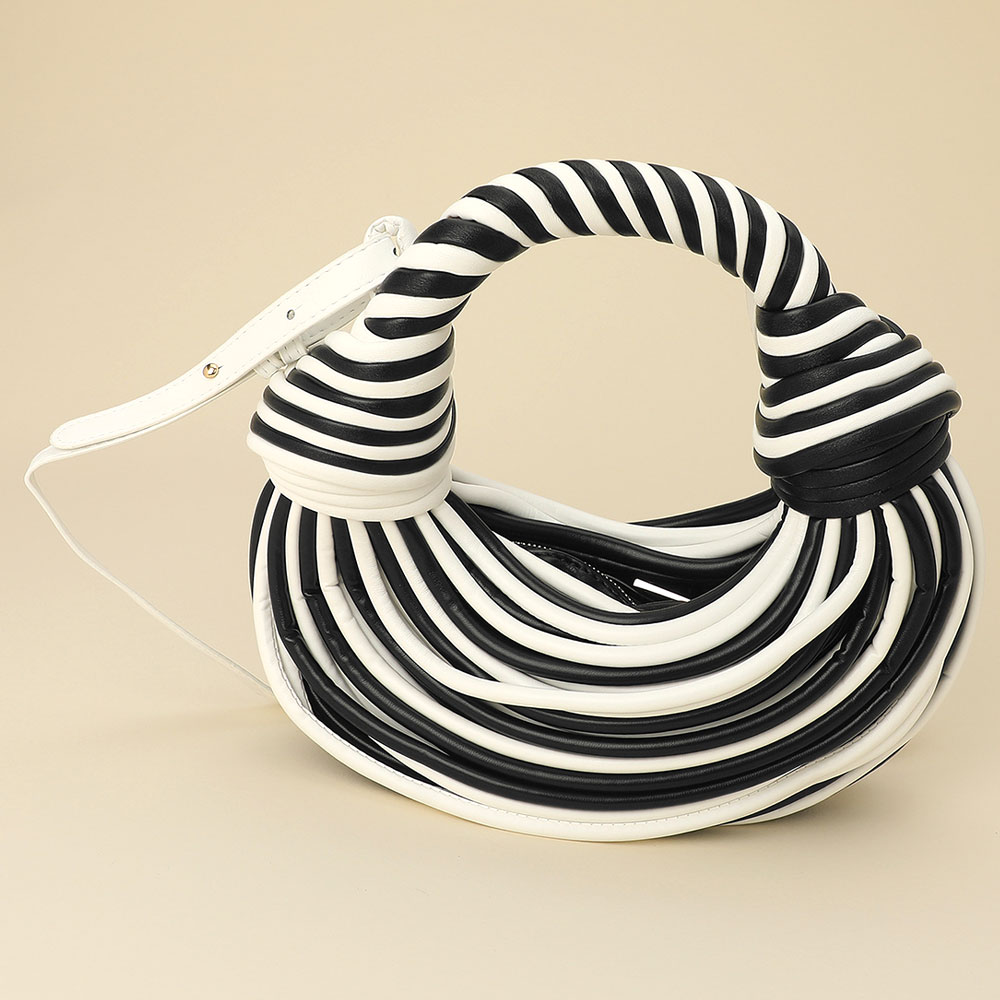 • Stand out with this textured statement shoulder bag featuring a sculpted design and intricate wrapped detailing. Its modern silhouette and artistic structure make it a versatile piece that adds a touch of high-fashion sophistication to any day or evening ensemble.